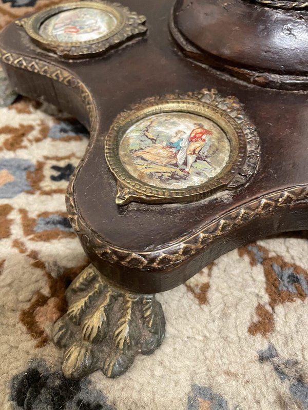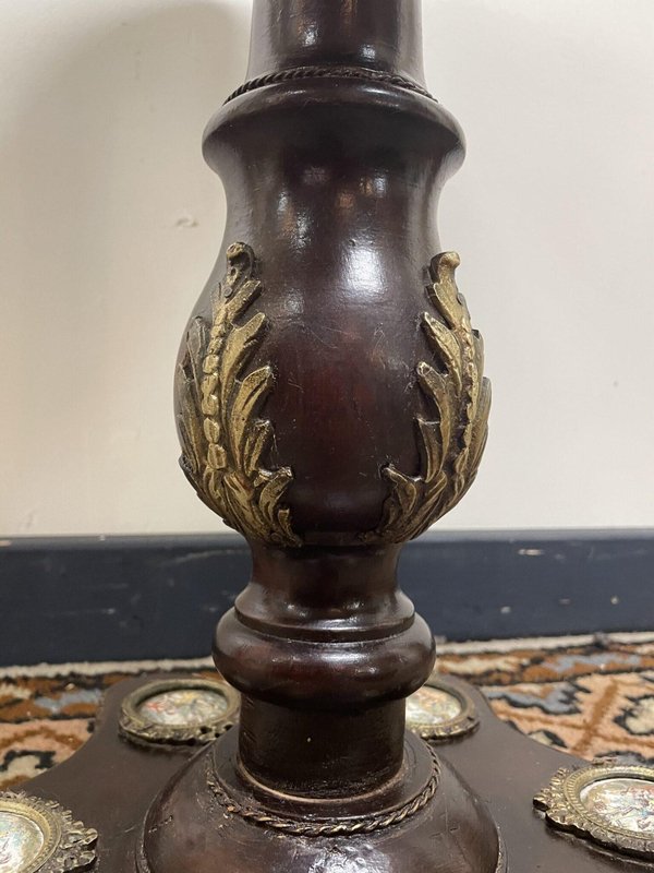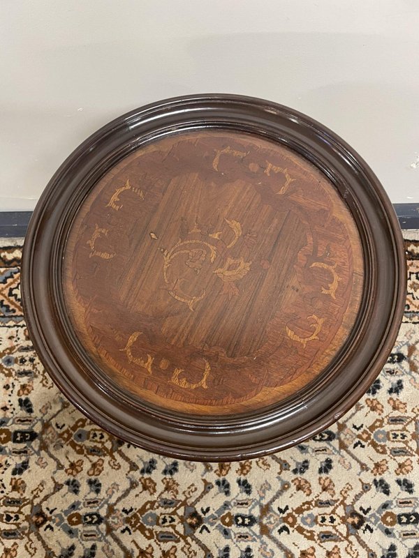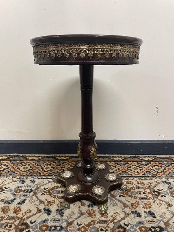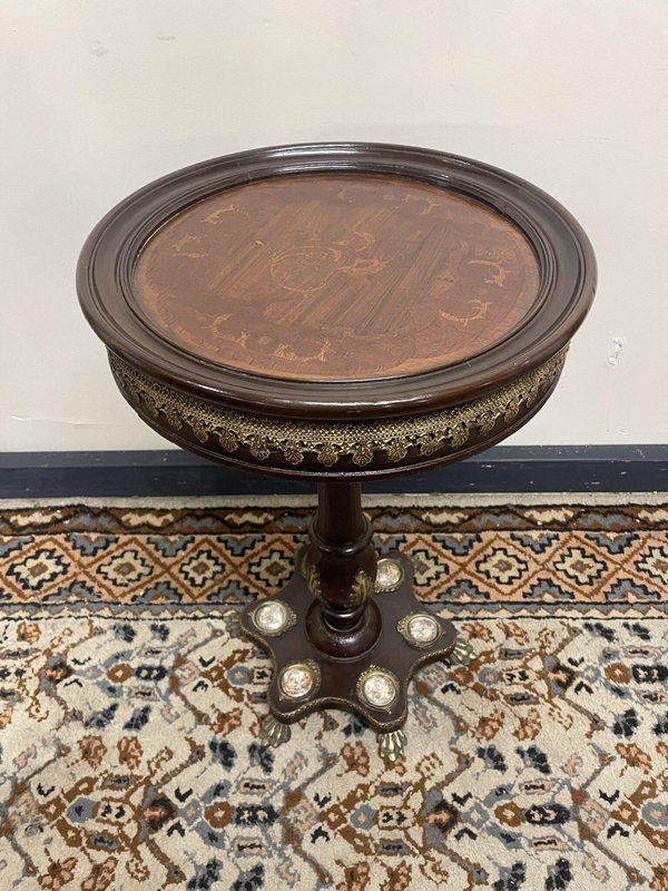 Round Ornate Pedestal Table with Inlay and Brass Details