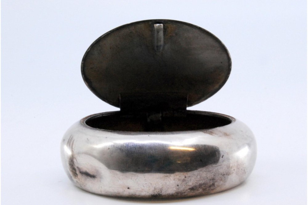 Round Silver Snuff Box with Pressure System on the Hinged Lid