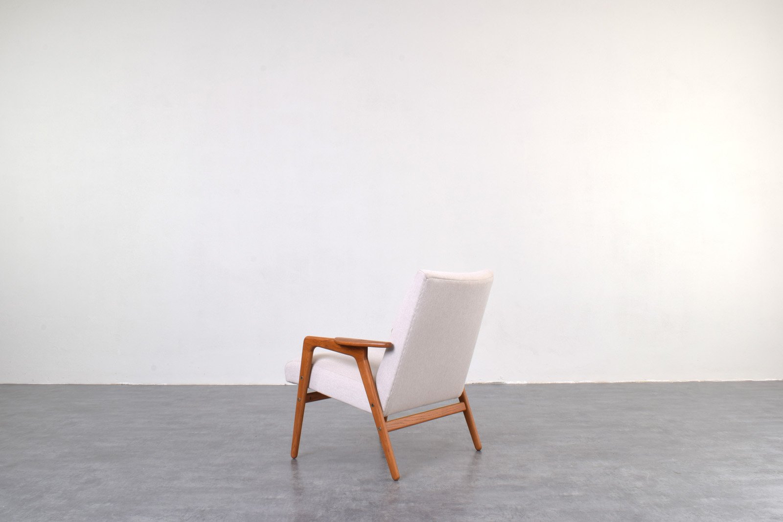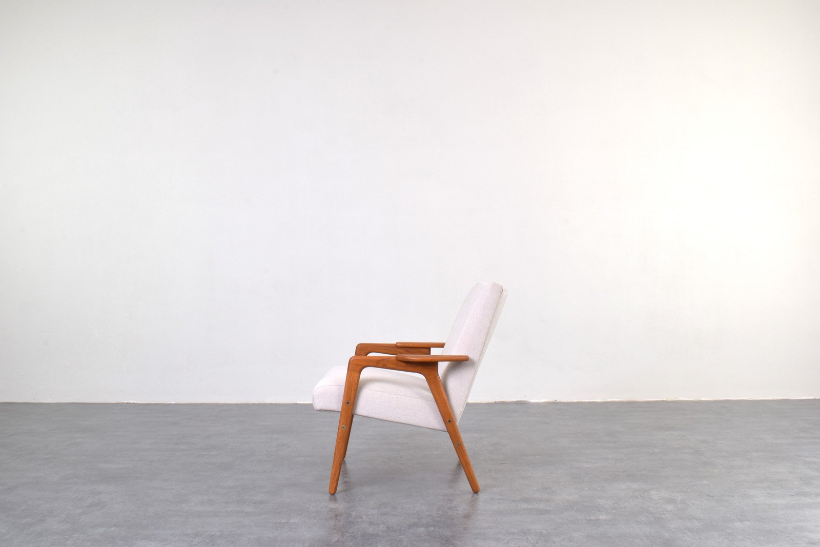 Other well-known designs in Ekström’s portfolio include the Ruster seating collection for Pastoe (1950s)—which features low-back and high-back models sofas and chairs made from solid teak with signature triangle armrests—as well as the spindle-back Arka Chair for Stolfabrik (1955), the modular Fakta shelving system for Swedese (1958), and a series of teak tea trolleys (1959, 1962). Ekström’s designs can be found in many permanent collections, including the Victoria & Albert Museum in London, Nationalmuseum in Stockholm, and the Stedelijkmuseum in Amsterdam.