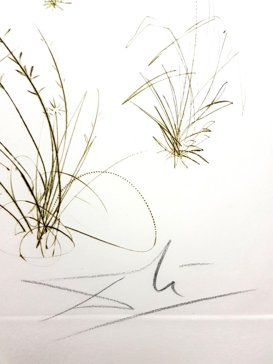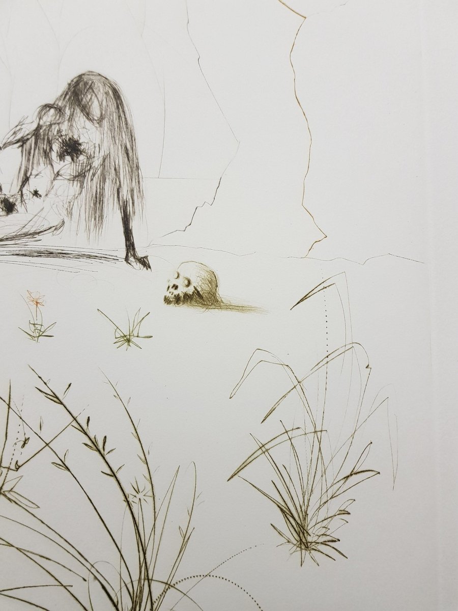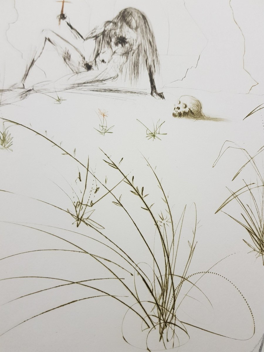 Salvador Dali - Brother Ogrin, The Hermit - Original Etching Dimensions: 45 x 33 cm Edition: 125 1970 Signed in pencil. On Arches Vellum References : Field 70-10 (p. 60-61) Salvador Dali Salvador Dali was born as the son of a prestigious notary in the small town of Figueras in Northern Spain. His talent as an artist showed at an early age and Salvador Felipe Jacinto Dali received his first drawing lessons when he was ten years old. His art teachers were a then well known Spanish impressionist painter, Ramon Pichot and later an art professor at the Municipal Drawing School. In 1923 his father bought his son his first printing press. Dali began to study art at the Royal Academy of Art in Madrid. He was expelled twice and never took the final examinations. His opinion was that he was more qualified than those who should have examined him. In 1928 Dali went to Paris where he met the Spanish painters Pablo Picasso and Joan Miro. He established himself as the principal figure of a group of surrealist artists grouped around Andre Breton, who was something like the theoretical ''schoolmaster'' of surrealism. Years later Breton turned away from Dali accusing him of support of fascism, excessive self-presentation and financial greediness. By 1929 Dali had found his personal style that should make him famous the world of the unconscious that is recalled during our dreams. The surrealist theory is based on the theories of the psychologist Dr. Sigmund Freud. Recurring images of burning giraffes and melting watches became the artist's surrealist trademarks. His great craftsmanship allowed him to execute his paintings in a nearly photo-realistic style. No wonder that the artist was a great admirer of the Italian Renaissance painter Raphael. Salvador Dali and Gala. Meeting Gala was the most important event in the artist's life and decisive for his future career. She was a Russian immigrant and ten years older than Dali. When he met her, she was married to Paul Eluard. Gala decided to stay with Dali. She became his companion, his muse, his sexual partner, his model in numerous art works and his business manager. For him she was everything. Most of all Gala was a stabilizing factor in his life. And she managed his success in the 1930s with exhibitions in Europe and the United States. Gala was legally divorced from her husband in 1932. In 1934 Dali and Gala were married in a civil ceremony in Paris and in 1958 in church after Gala's former husband had died in 1952. However from around 1965 on, the couple was seen less frequently together. But Gala continued to manage Dali's business affairs. 1933 Salvador Dali had his first one-man show in New York. One year later he visited the U.S. for the first time supported by a loan of US$500 from Pablo Picasso. To evade World War II, Dali chose the U.S.A. as his permanent residence in 1940. He had a series of spectacular exhibitions, among others a great retrospective at the Museum of Modern Art in New York. Besides creating a number of great paintings, Dali caused the attention of the media by playing the role of a surrealist clown. He made a lot of money and was contemptuously nicknamed Avida Dollars (greedy for dollars) by Andre Breton. Dali became the darling of the American High Society. Celebrities like Jack Warner or Helena Rubinstein gave him commissions for portraits. His art works became a popular trademark and besides painting he pursued other activities - jewelry and clothing designs for Coco Chanel or film making with Alfred Hitchcock. The Classic Period After World War II In 1948 Dali and Gala returned to Europe, spending most of their time either in their residence in Lligat or Spain or in Paris or France or in New York. Dali developed a lively interest in science, religion and history. He integrated things into his art that he had picked up from popular science magazines. Another source of inspiration were the great classical masters of painting like Raphael, Velasquez or the French painter Ingres. The artist commented his shift in style with the words: ''To be a surrealist forever is like spending your life painting nothing but eyes and noses.'' In 1958 the artist began his series of large sized history paintings. He painted one monumental painting every year during the summer months in Lligat. The most famous one, The Discovery of America by Christopher Columbus, can be seen at the Dali Museum in St. Petersburg in Florida. It is breath-taking. The artist's late art works combine more than ever his perfect and meticulous painting technique with his fantastic and limitless imaginations. Salvador Dali is the only known artist who had two museums dedicated exclusively to his works at lifetime. Dali Museum in St. Petersburg, Florida The Dali Museum in St. Petersburg in Florida or U.S.A. was founded in 1971 by the Dali collector A. Reynolds Morse and his wife Eleanor. The collection was first exhibited in a building adjacent to their home in Cleveland/Ohio. In 1982, the museum was moved to St. Petersburg in Florida. It hosts 95 oil paintings including six of Dali's eighteen large-sized historical paintings. Dali Museum-Theater in Figueres, Spain. The Dali Museum-Theater in Figueres, Spain was the former Municipal Theater of Figueres. In 1918, when Salvador Dali was only fourteen years old, it had shown his first public exhibition. Since 1970 the artist had dedicated his energy to transform the former Municipal Theater into a museum and art gallery. In 1974 the Theatro Museo Dali was officially opened. 1980 Dali was forced to retire due to palsy, a motor disorder, that caused a permanent trembling and weakness of his hands. He was not able to hold a brush any more. The fact that he could not follow his vocation and passion of painting and the news of Gala's death in 1982 left him with deep depressions. After Gala's death he moved to Pubol, a castle, he had bought and decorated for Gala. In 1984, when he was lying in bed, a fire broke out and he suffered s