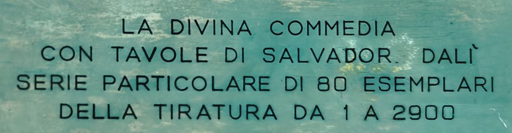 The watercolours were not published in Italy until 1964: at the Scuola Grande di San Teodoro in Venice, the publishers Adriano Salani of Florence and Arti e Scienze of Rome organised an International Art Book Exhibition, presenting the Italian edition of the Divine Comedy illustrated by Dalí.