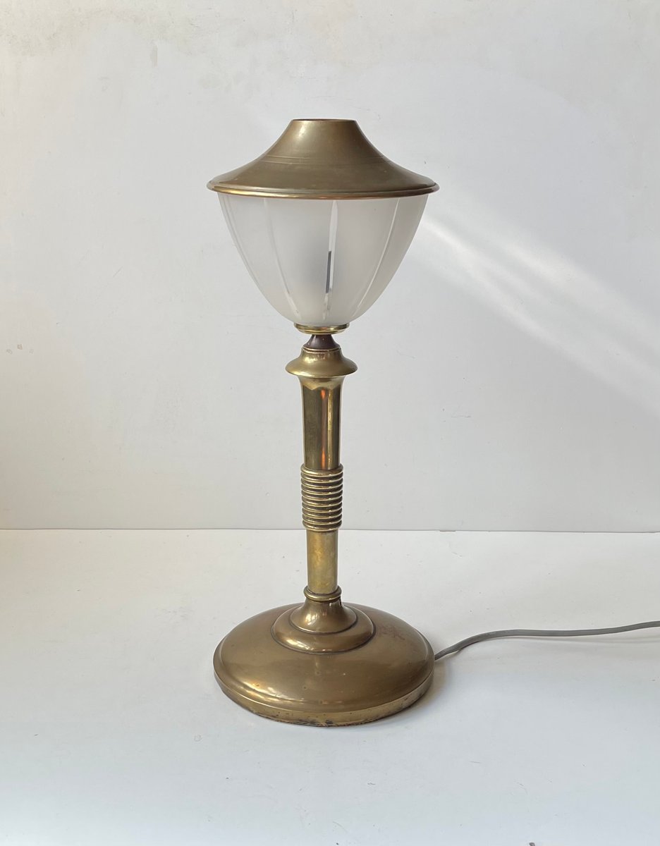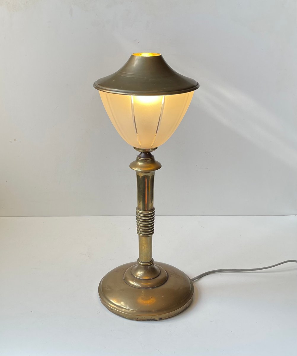 Scandinavian Art Deco Table Lamp in Bronze, Brass and Glass, 1930s