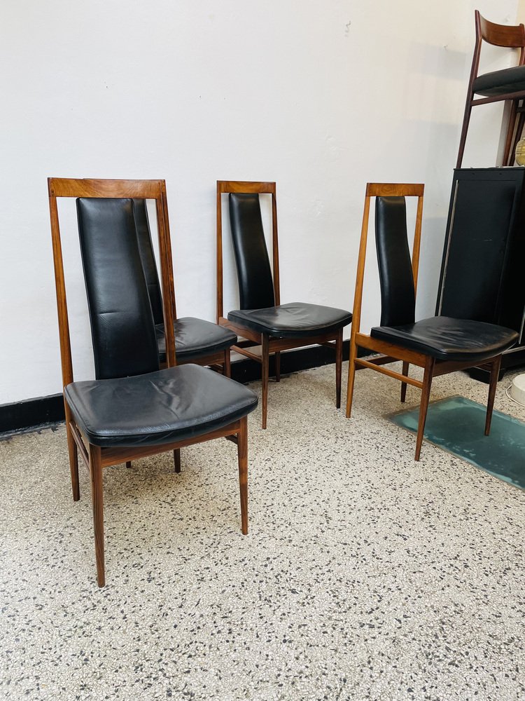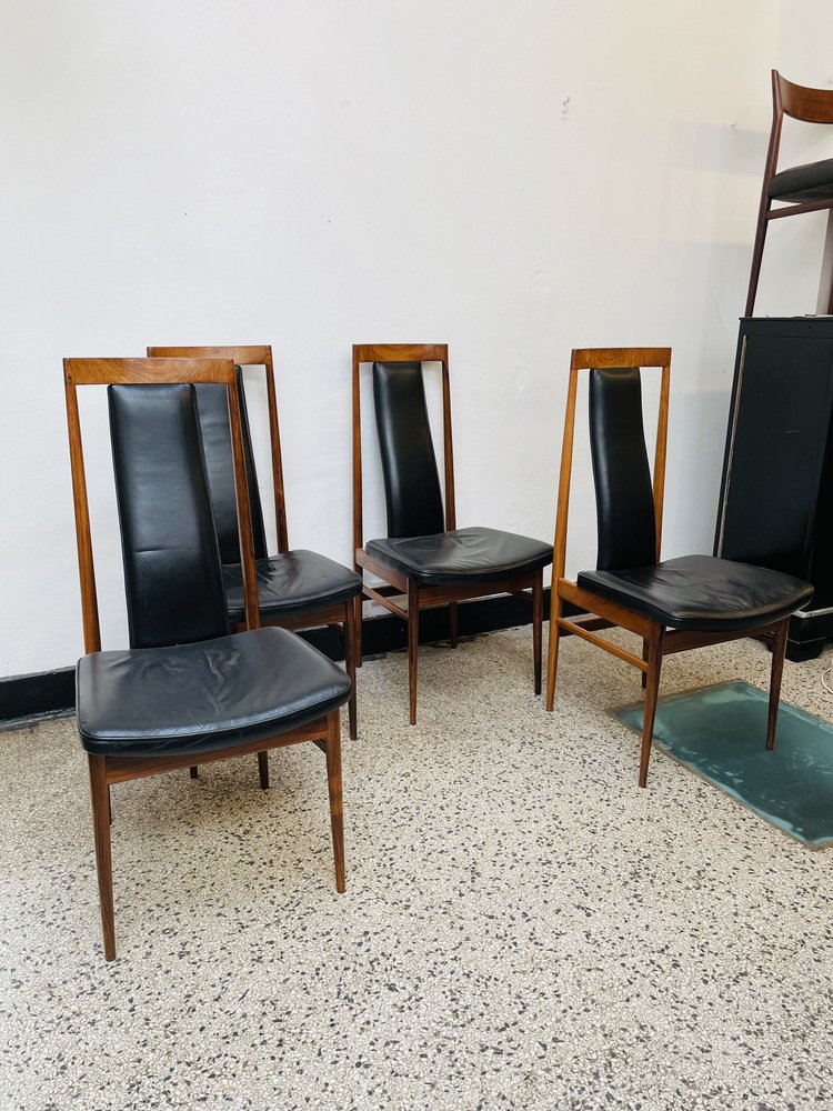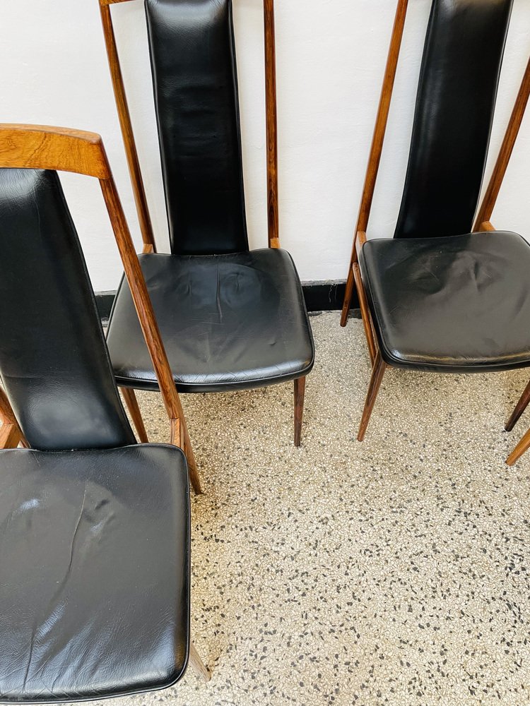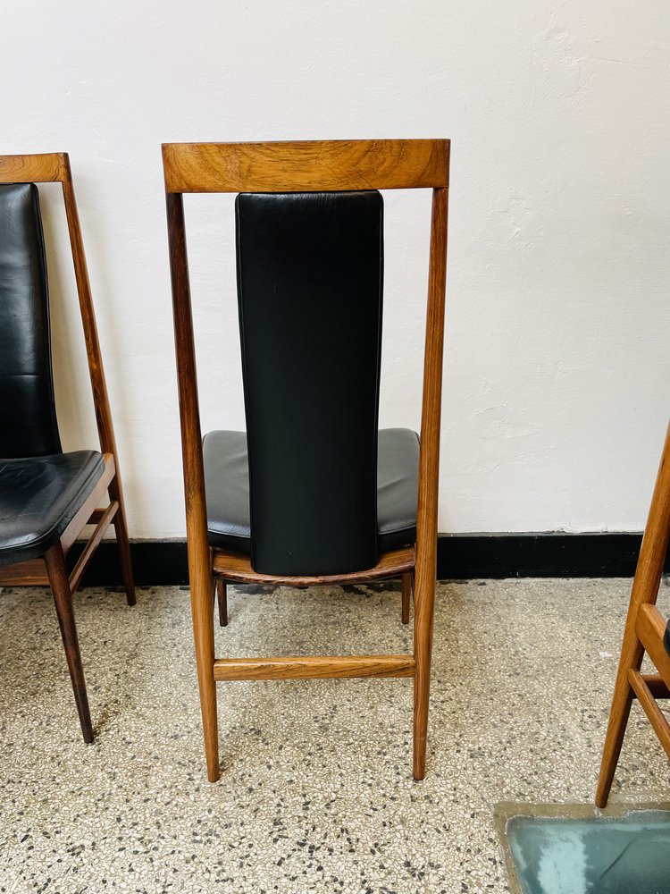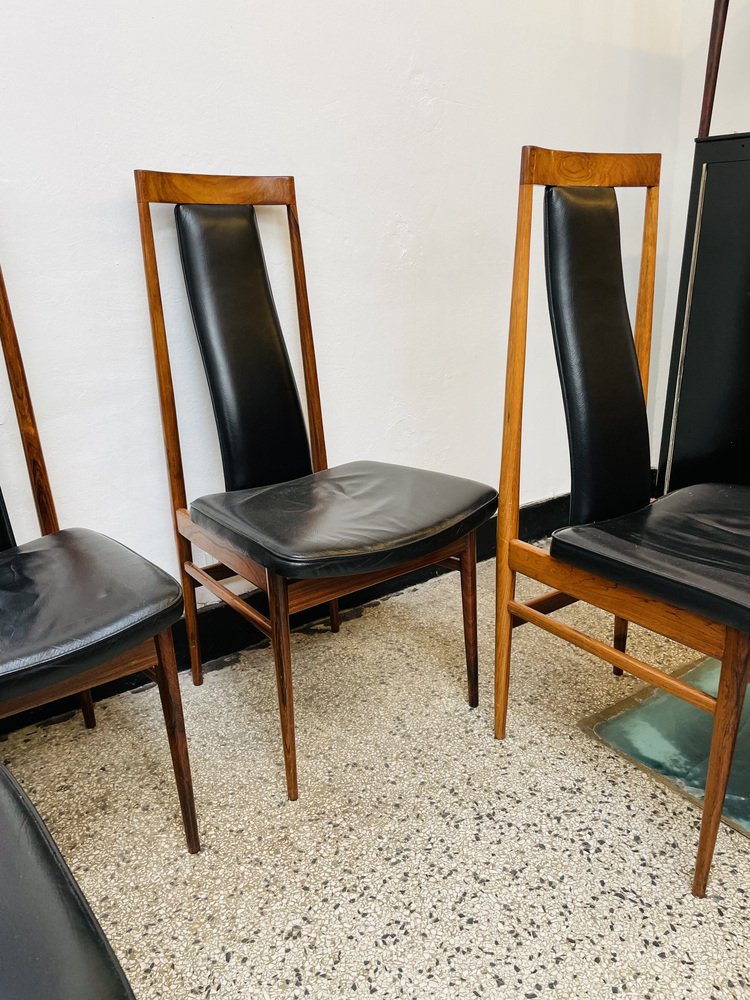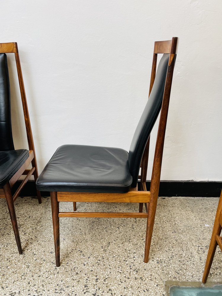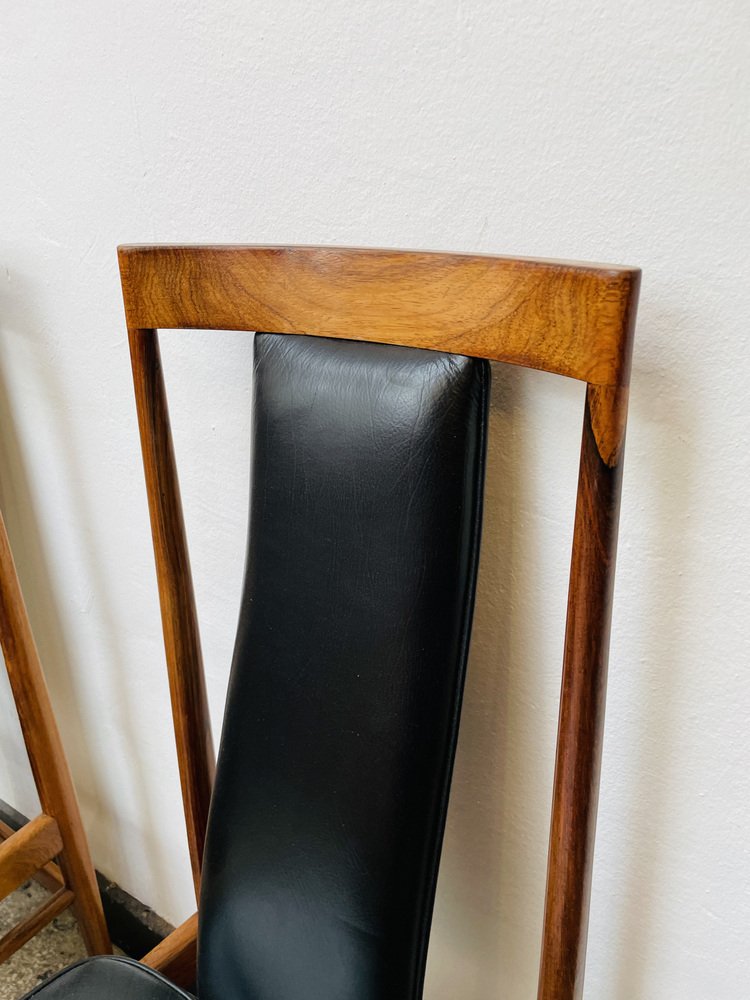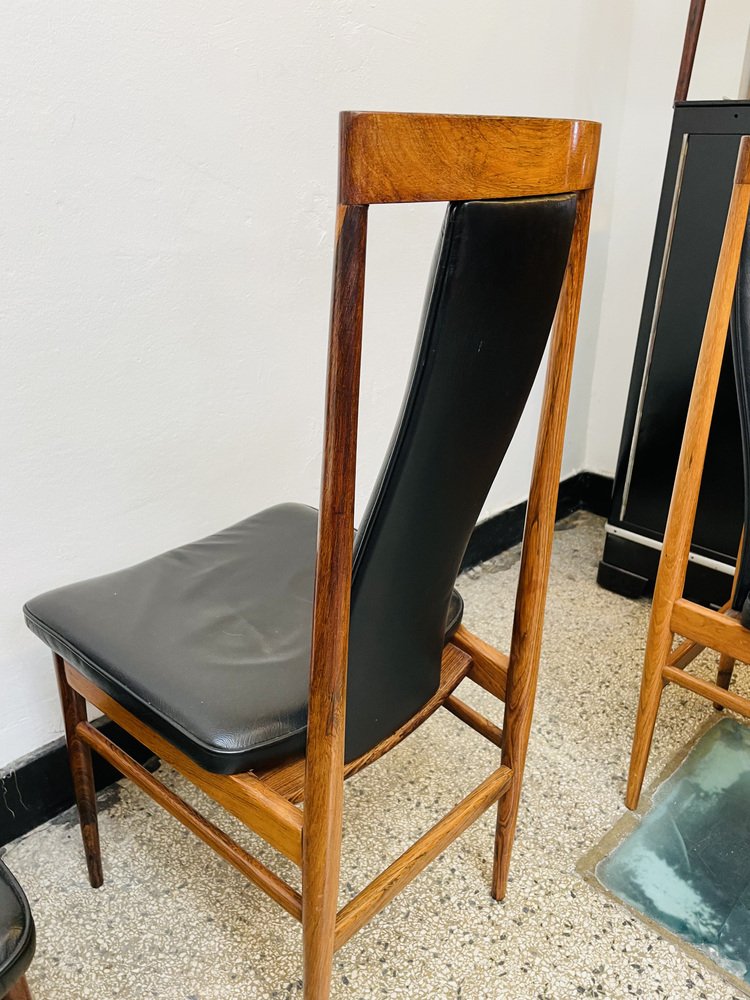 Scandinavian Dining Chairs in Wood and Synthetic Leather, 1960s, Set of 6