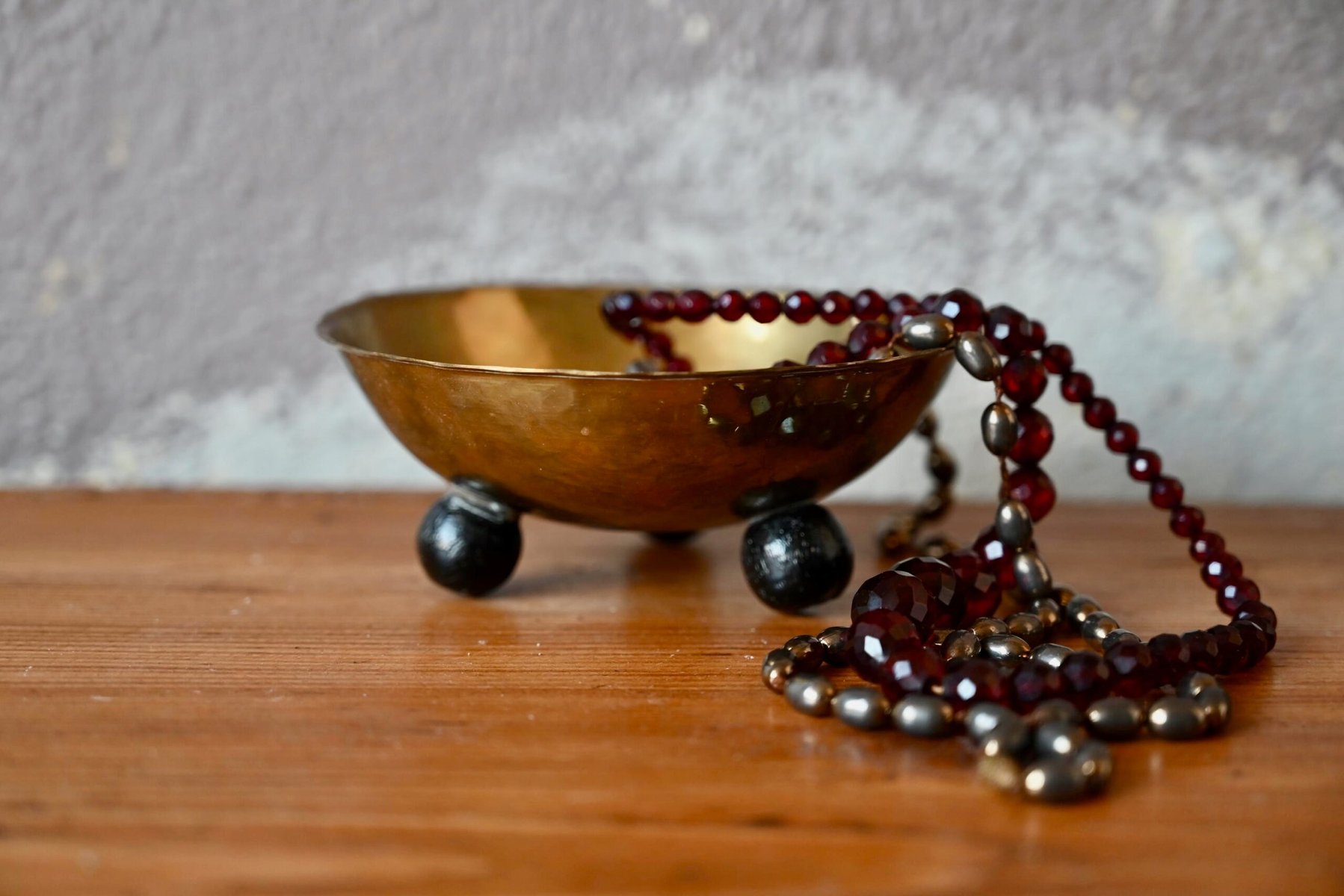 Scandinavian Tripod Ring Sizer in Gilded Copper and Blackened Wood, 1970s