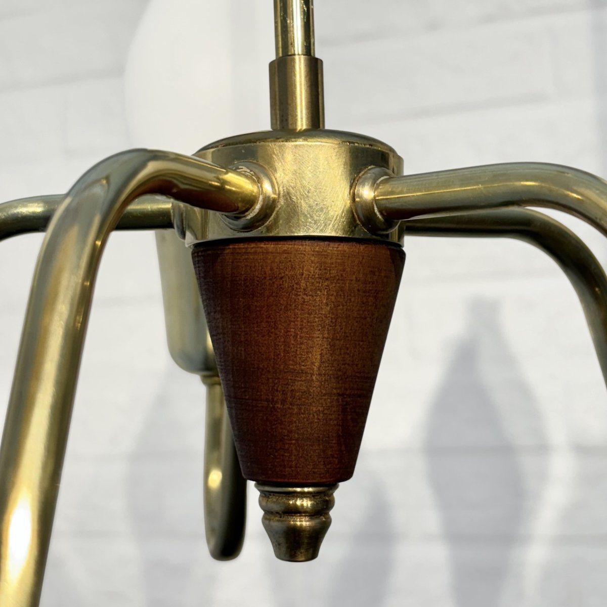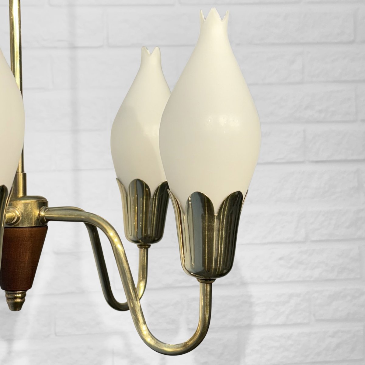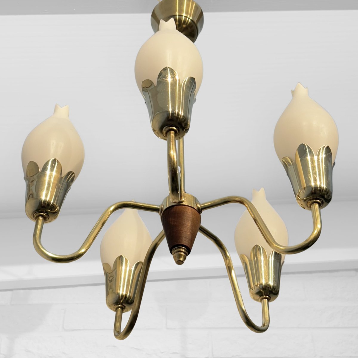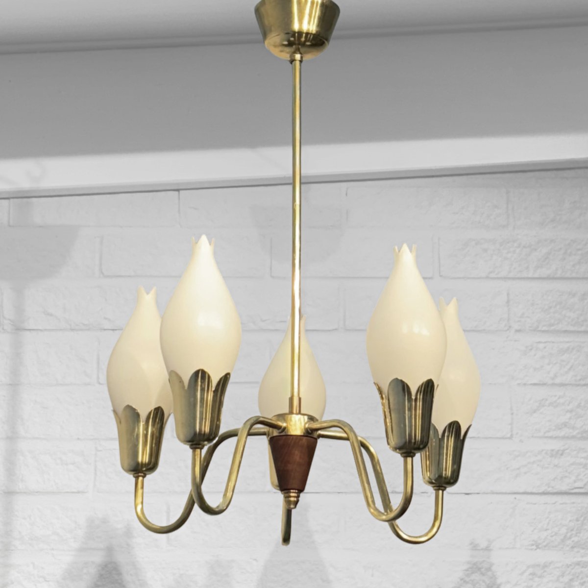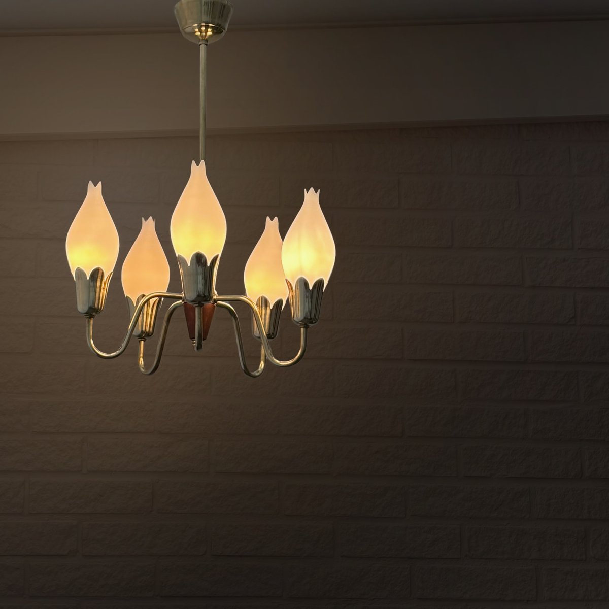 Scandinavian Tulip Chandelier in Brass and Glass from Fog & Mørup, 1950s