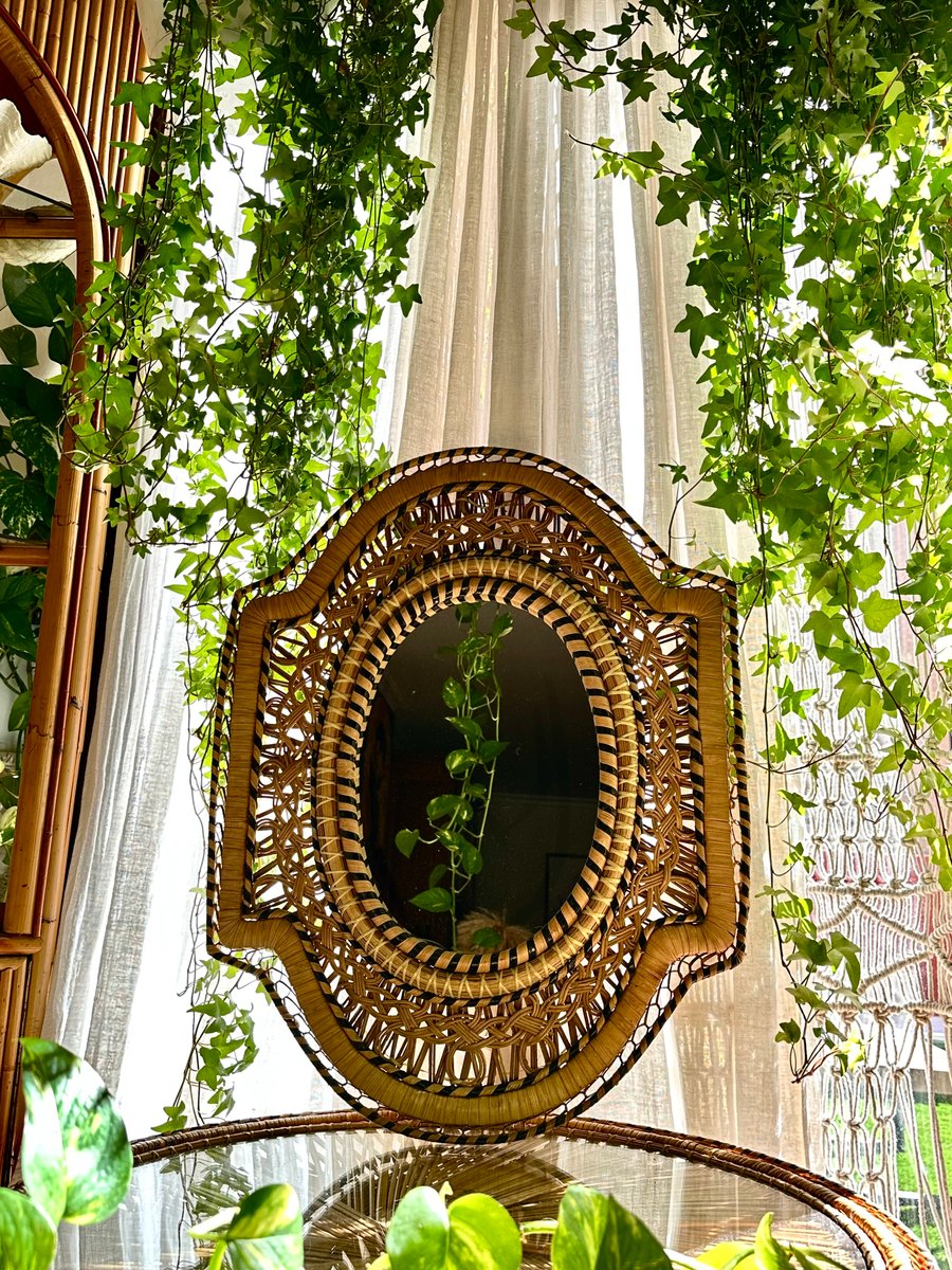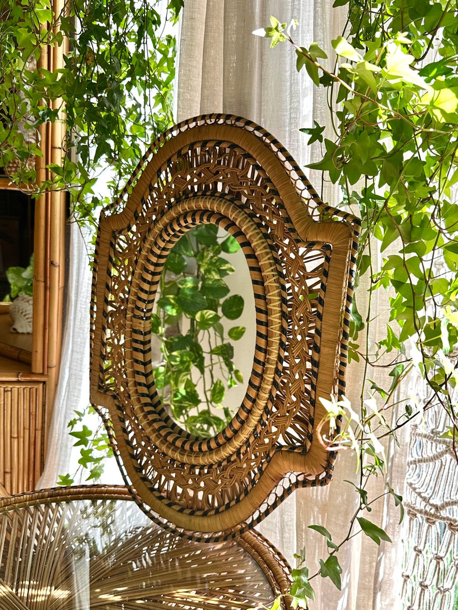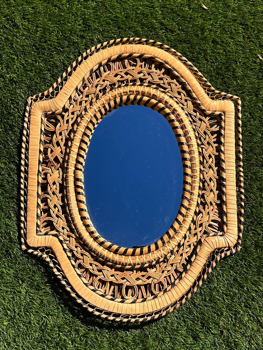 Sculptural Mirror in Rattan and Natural Wicker, 1970