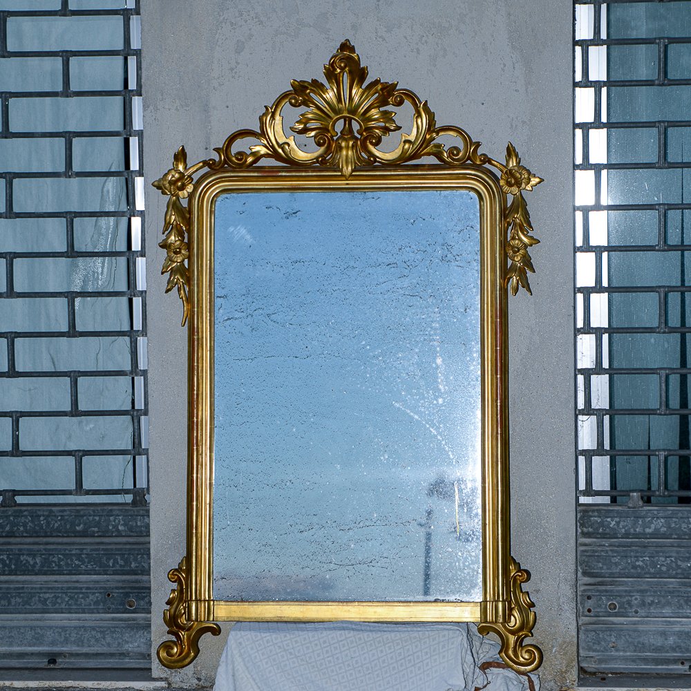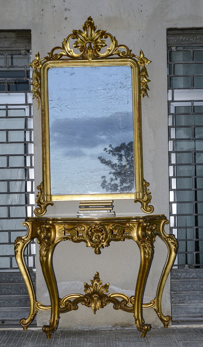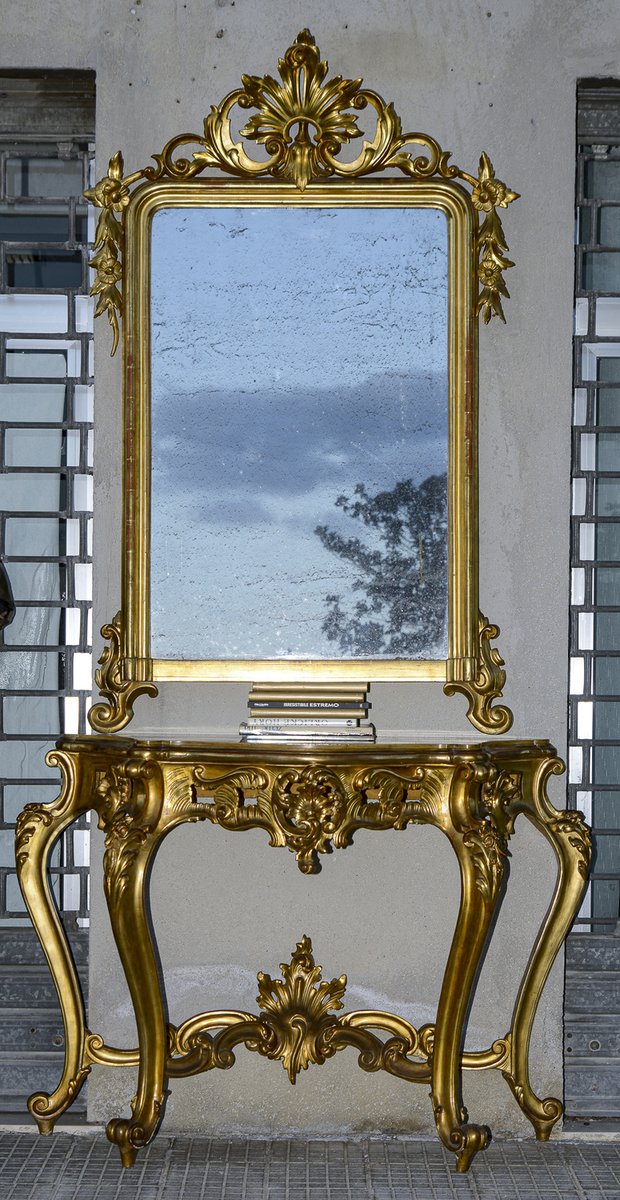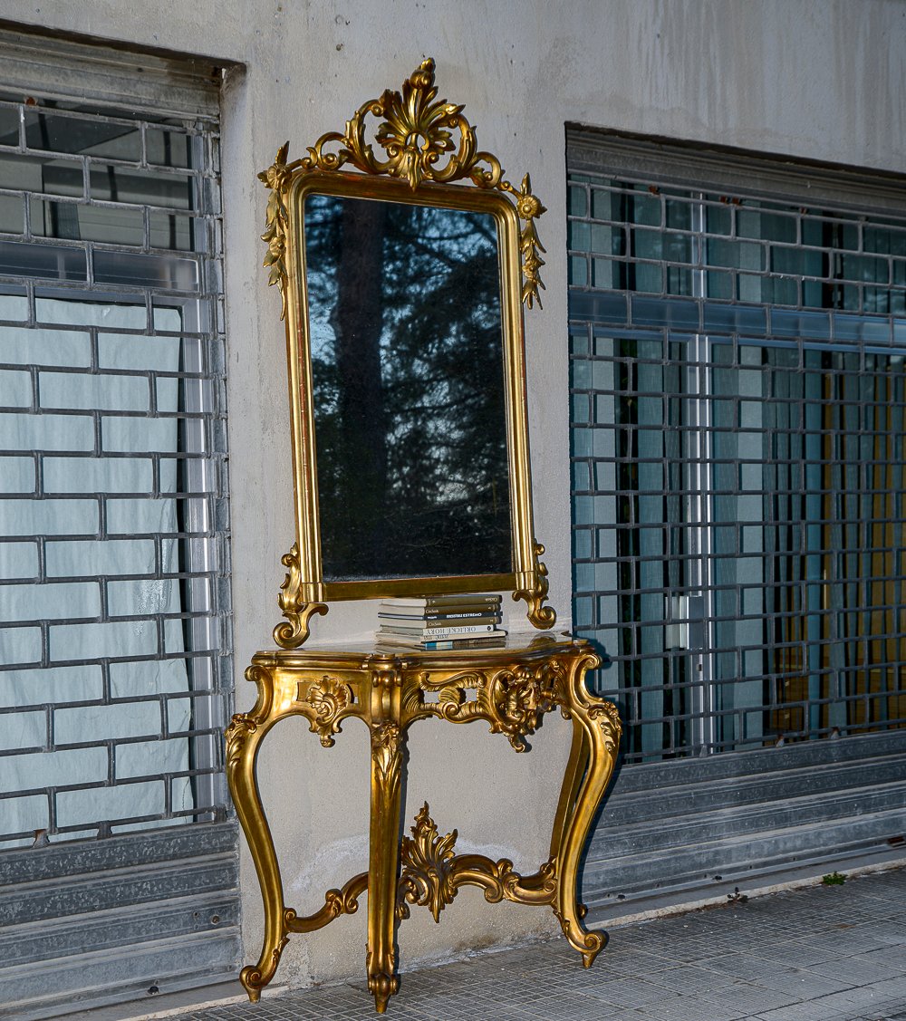 Second Half of the 20th Century Console with Mirror in Carved and Gilded Wood, France, 1890s, Set of 2