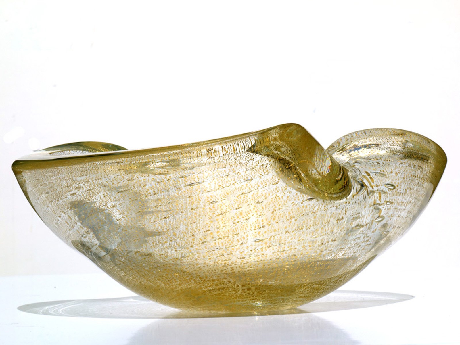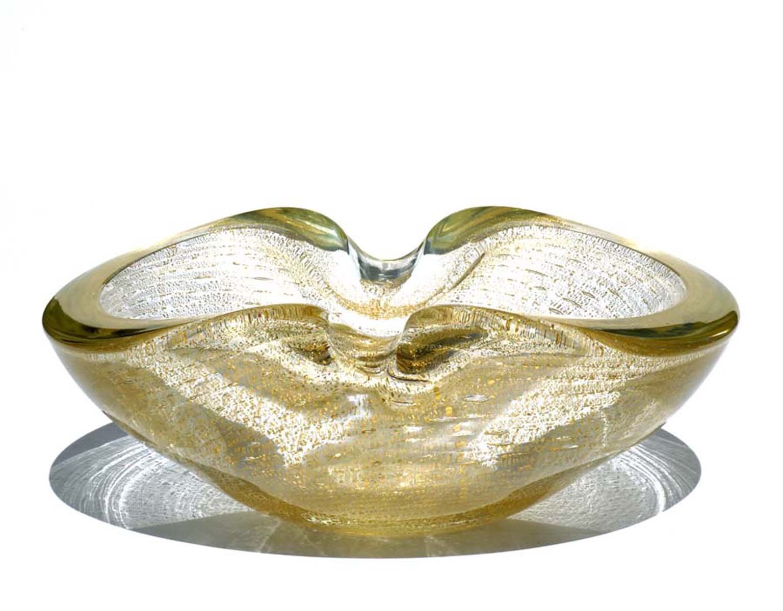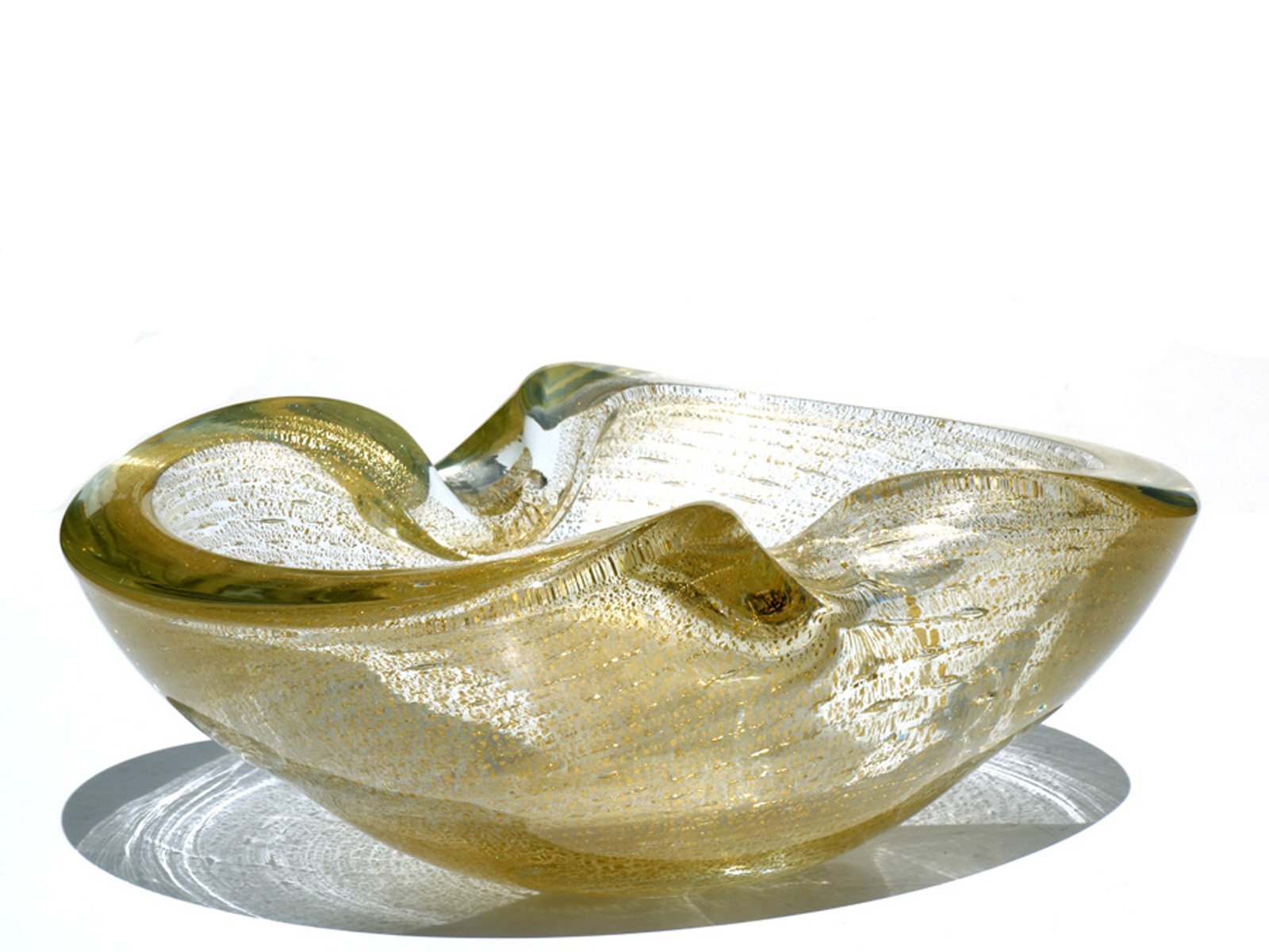 Seguso Murano Gold Glass Big Bowl, 1960s