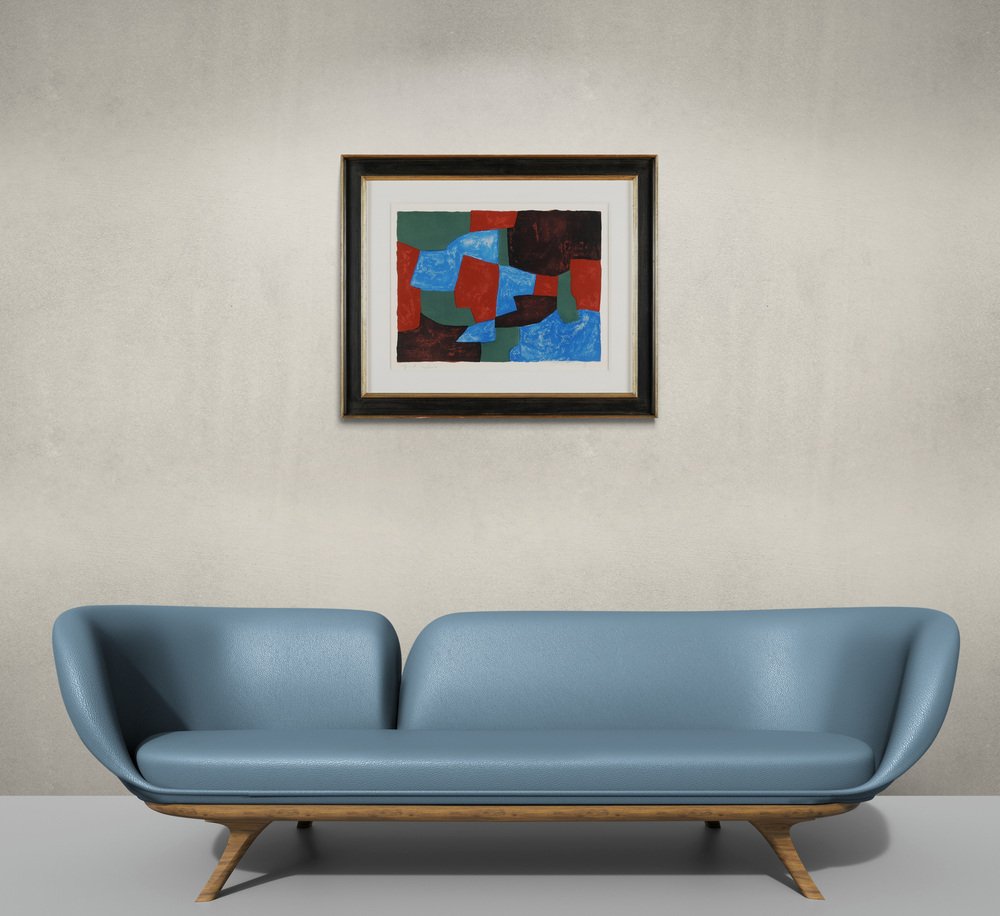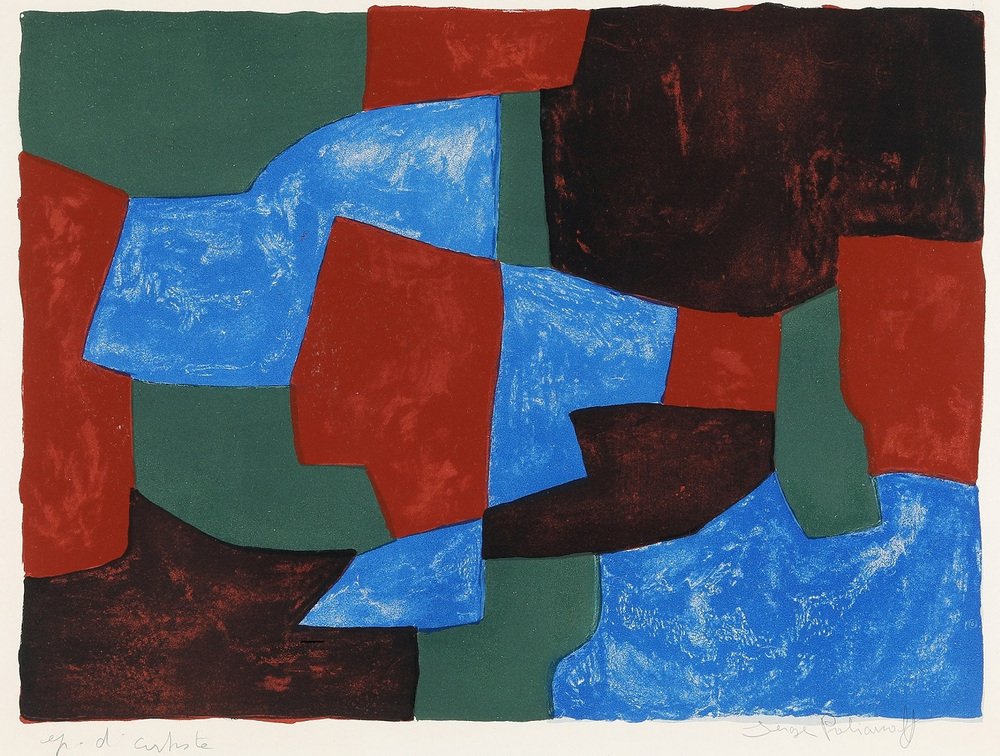 Serge Poliakoff, Komposition Blau, Grün und Rot, 1961, Framed