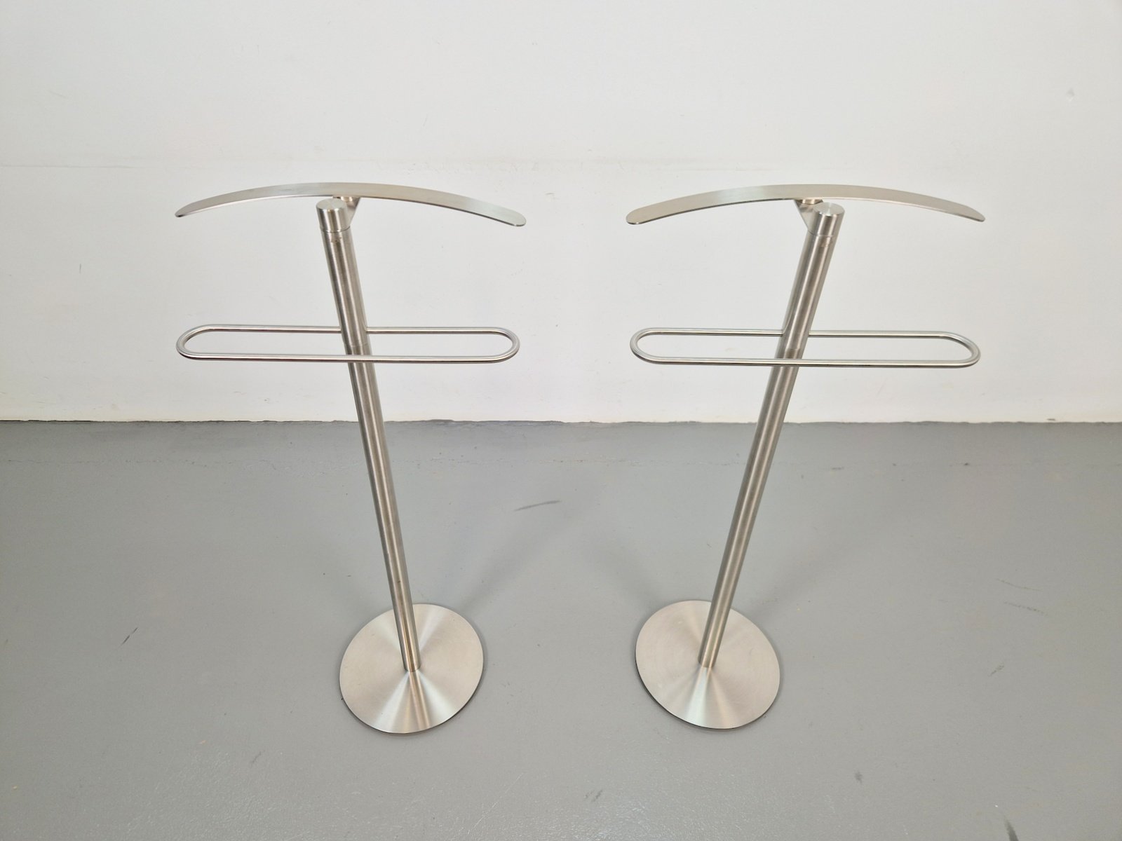 Set of 2 Postmodern Stainless Steel Servero Valet Stands by Zack Design, Germany '90s