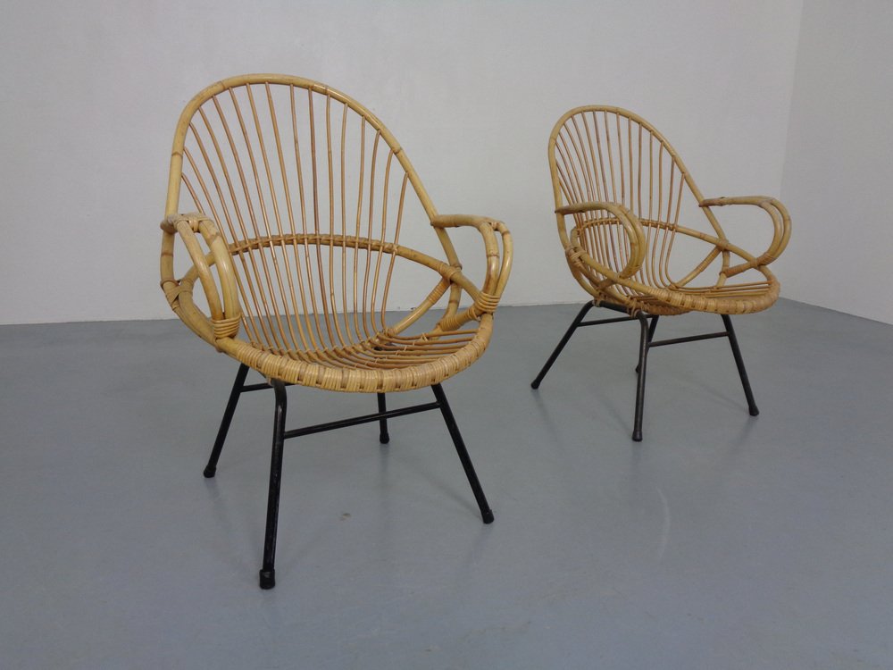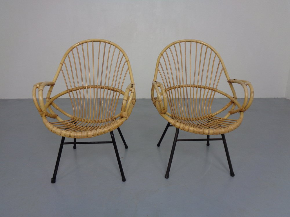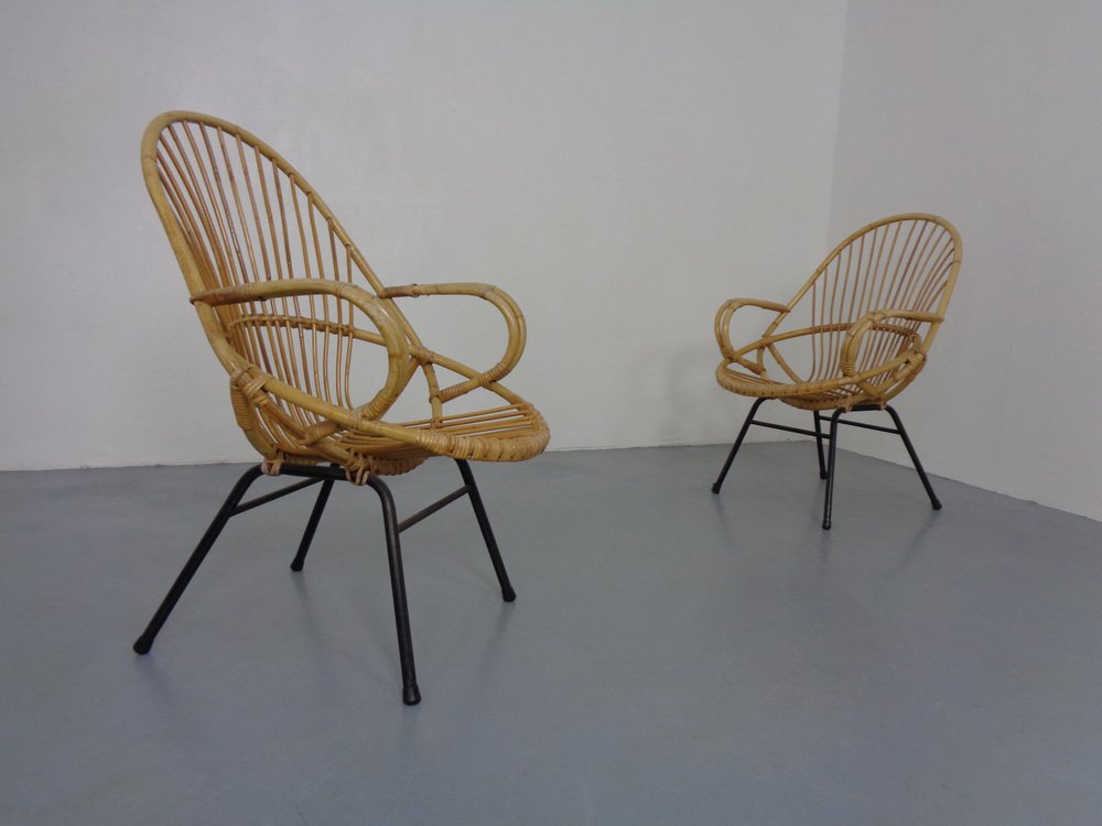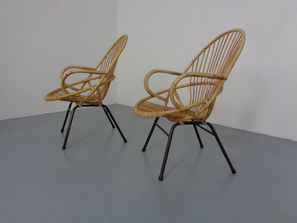 Set of Dutch Mid-Century Bamboo Chairs by Rohé Noordwolde, 1950s
