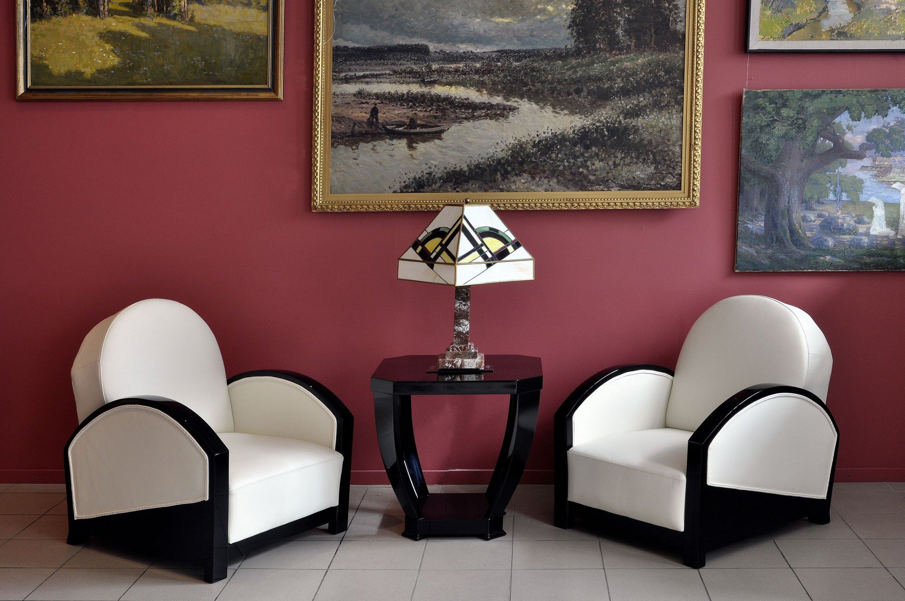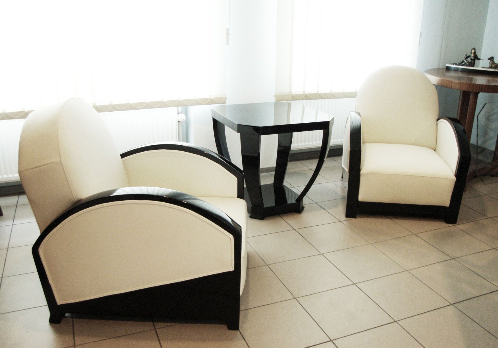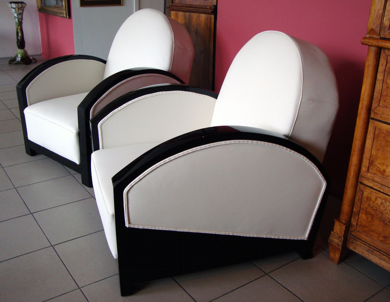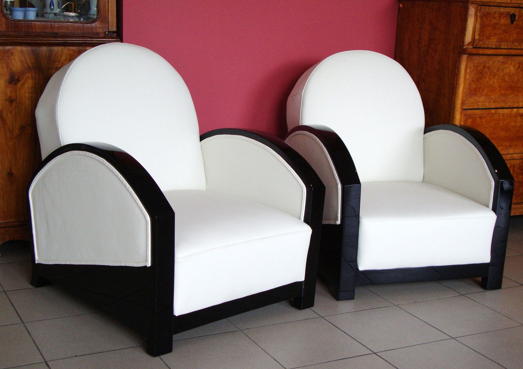 Set of French Club Chairs in White Leather, 1920s