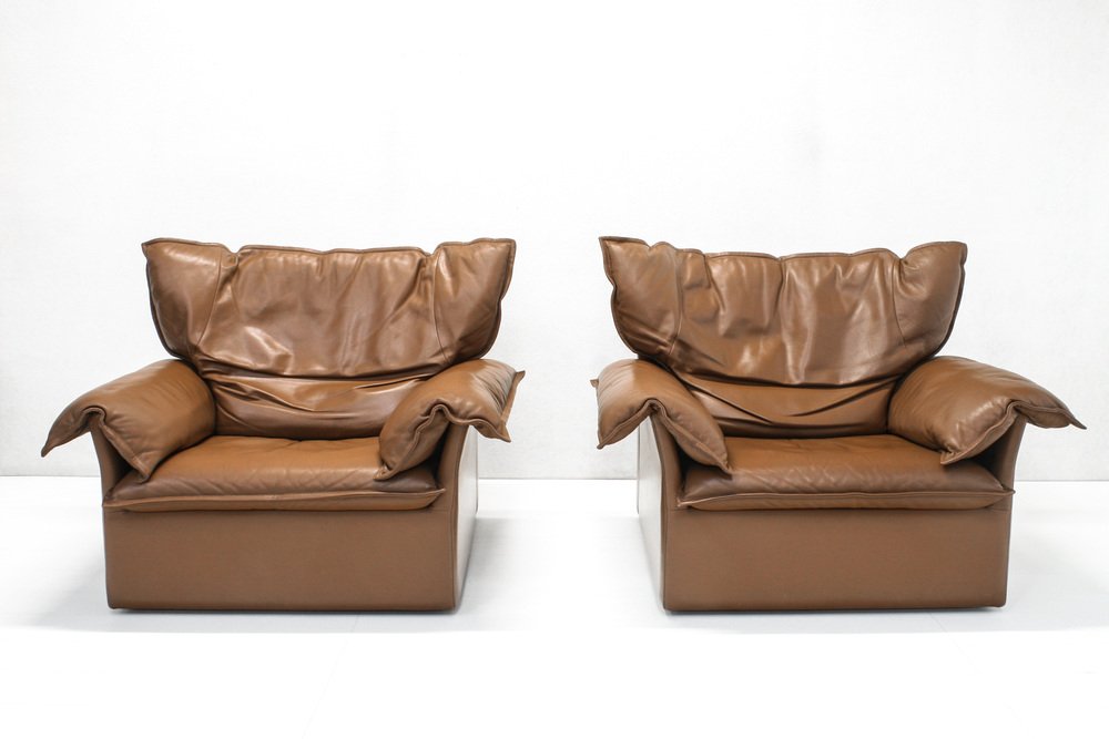 Set of Leather Wingback Armchairs from Durlet, 1970s
