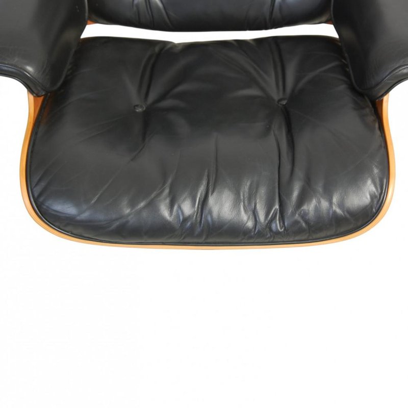 Set of Lounge Chair and Ottoman in Black Leather by Charles and Ray Eames, 1990s