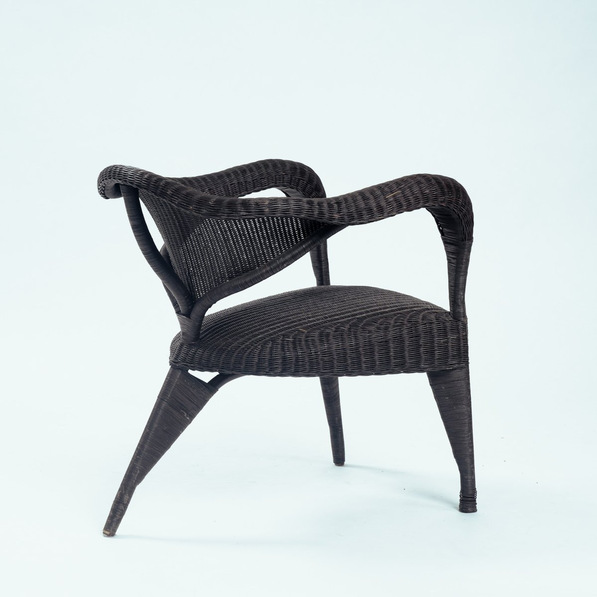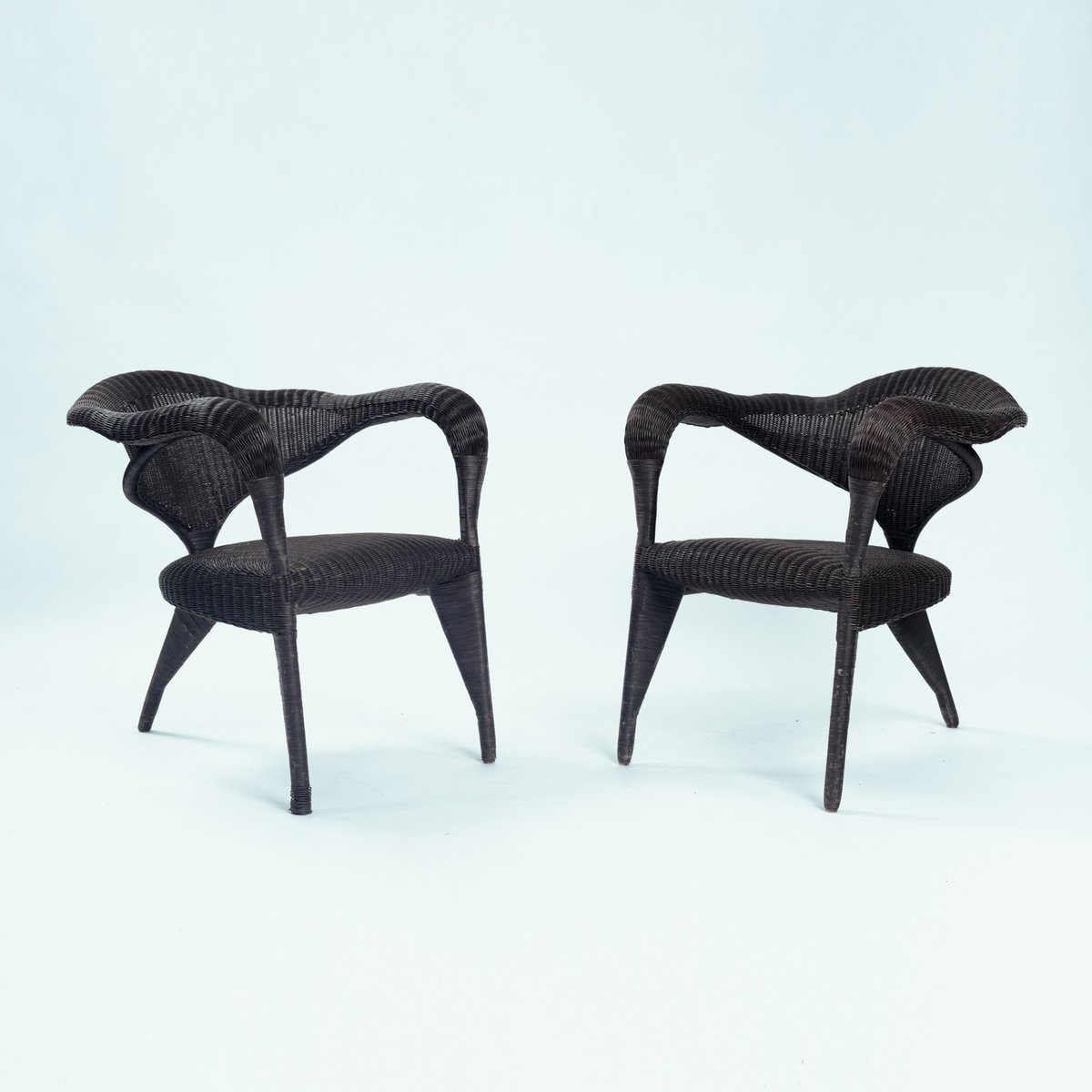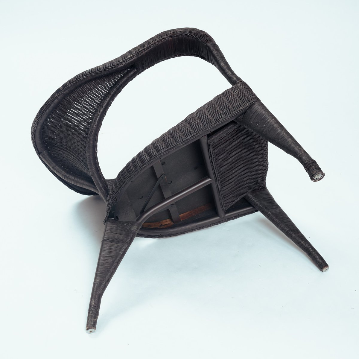 Set of Sculptural Rattan Tripod Armchairs, 1980s
