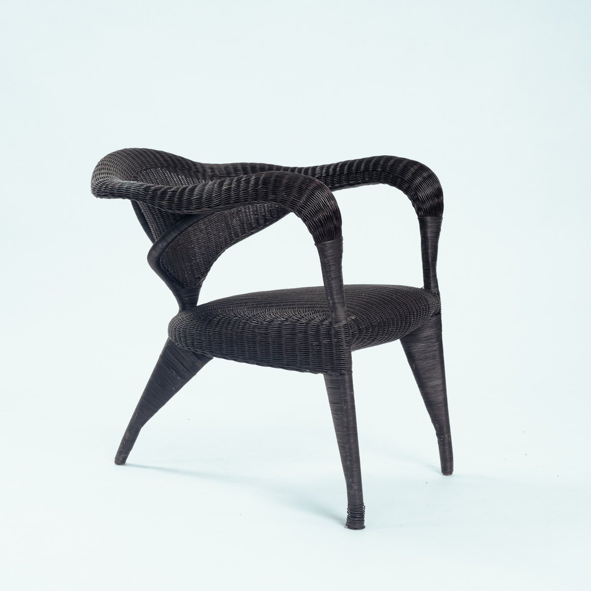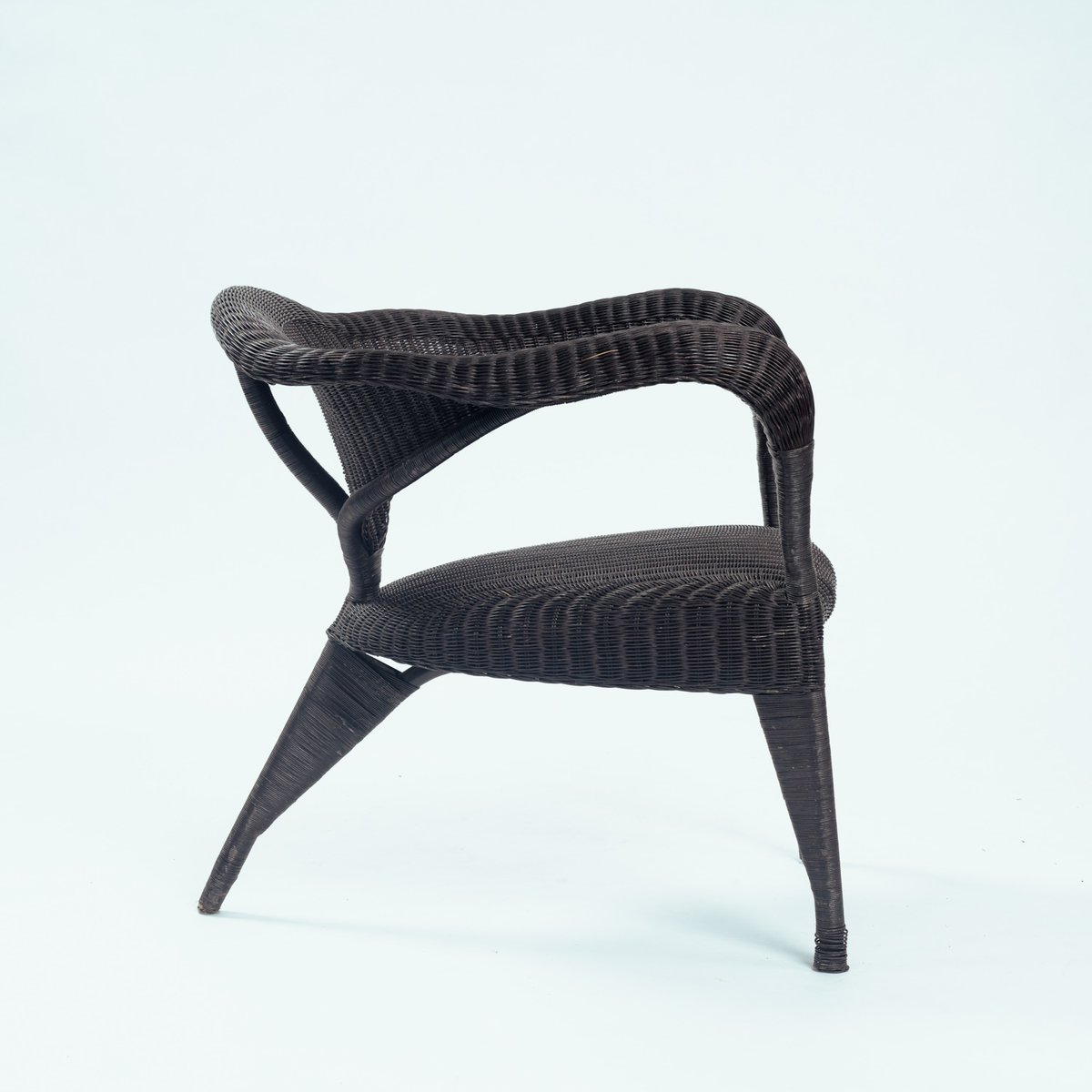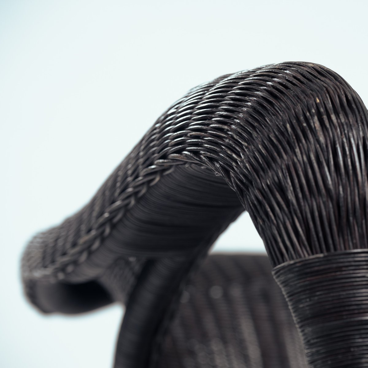 Set of Sculptural Rattan Tripod Armchairs, 1980s