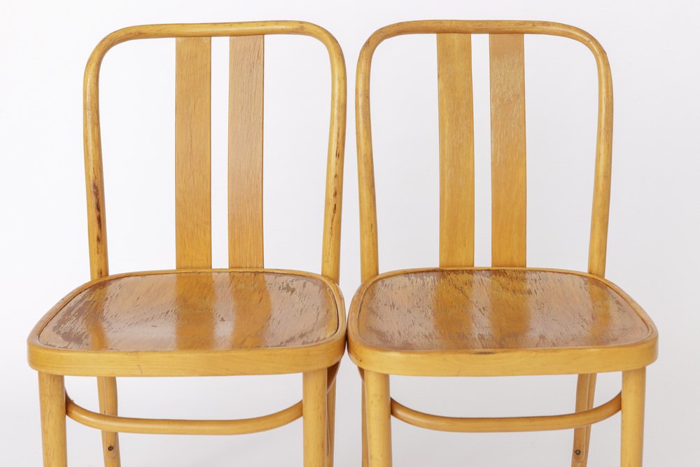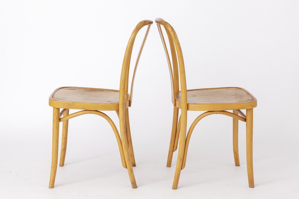 Mid-Century German Beechwood Chairs with Black Faux Leather Seats, 1970s, Set of 2