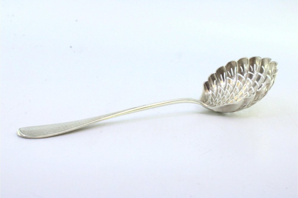 Shell-Shaped Silver Sprinkling Spoon with Guilloche Handle