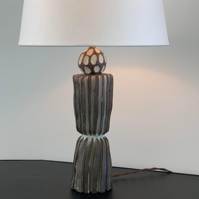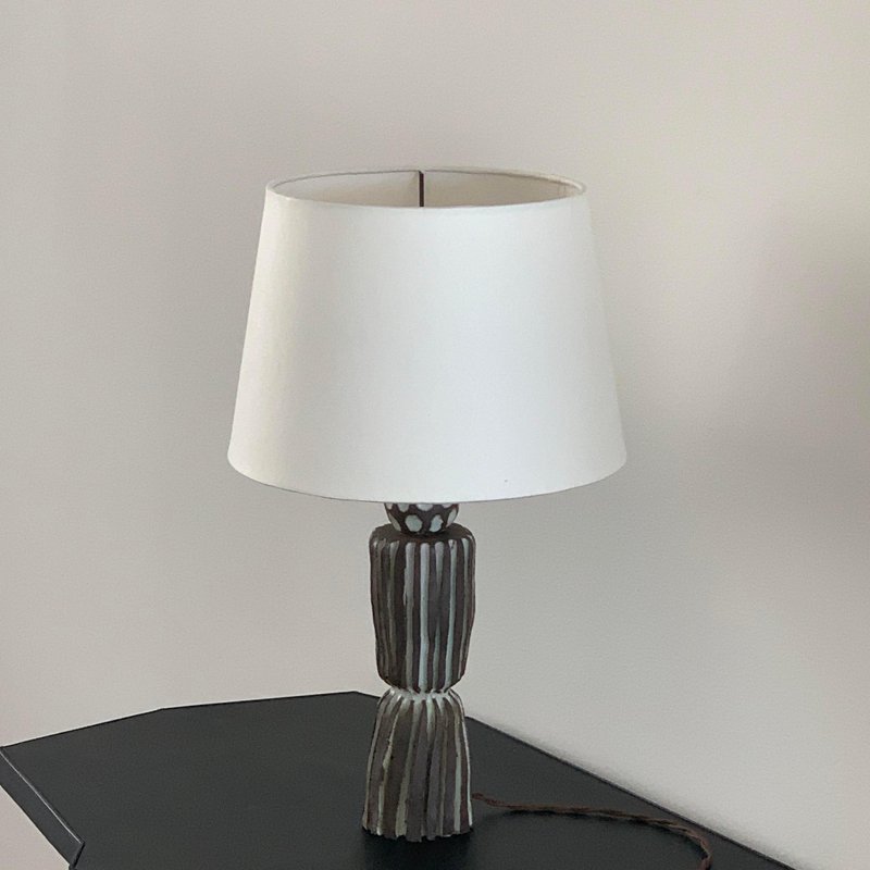Sillons Grooved Pottery Lamp with Parchment Shade by Design Freres