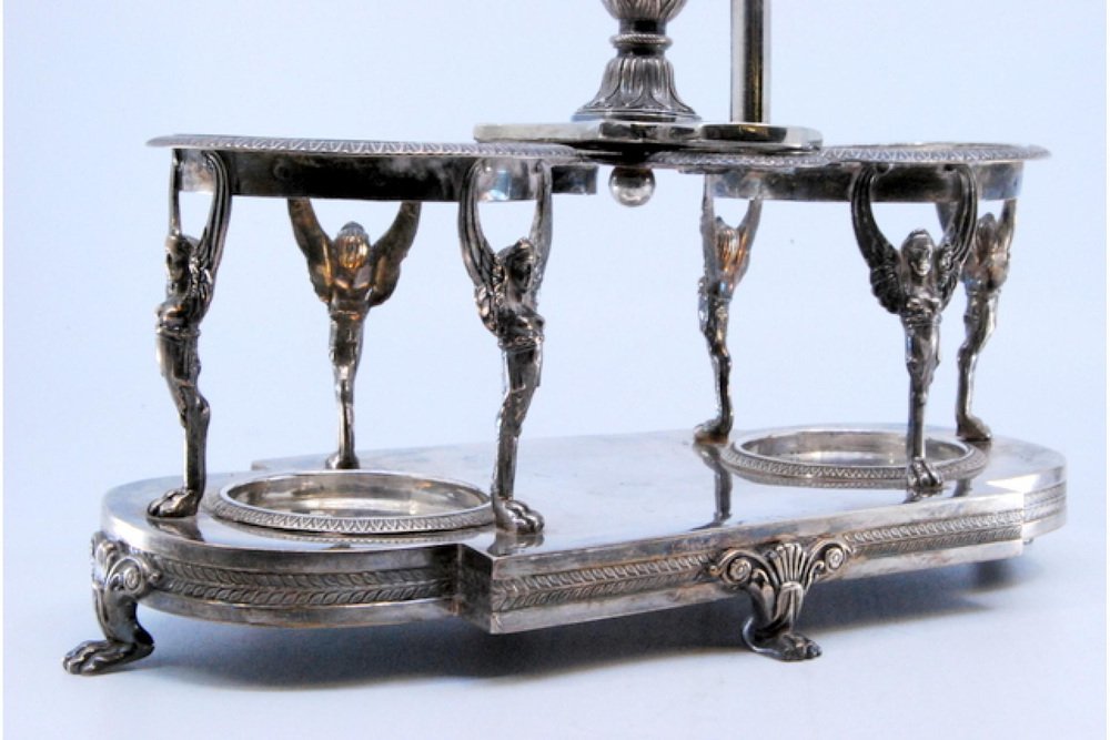 Silver and Cut Glass Cruets with Applications, Friezes and Reliefs, Set of 3