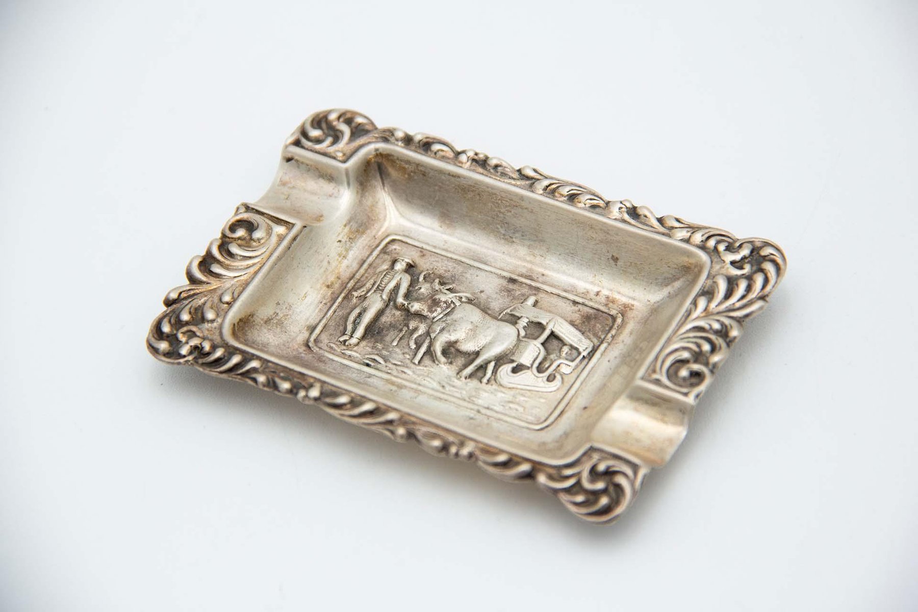 Silver Ashtray with Cigarette Holders and Bucolic Scenes Reliefs