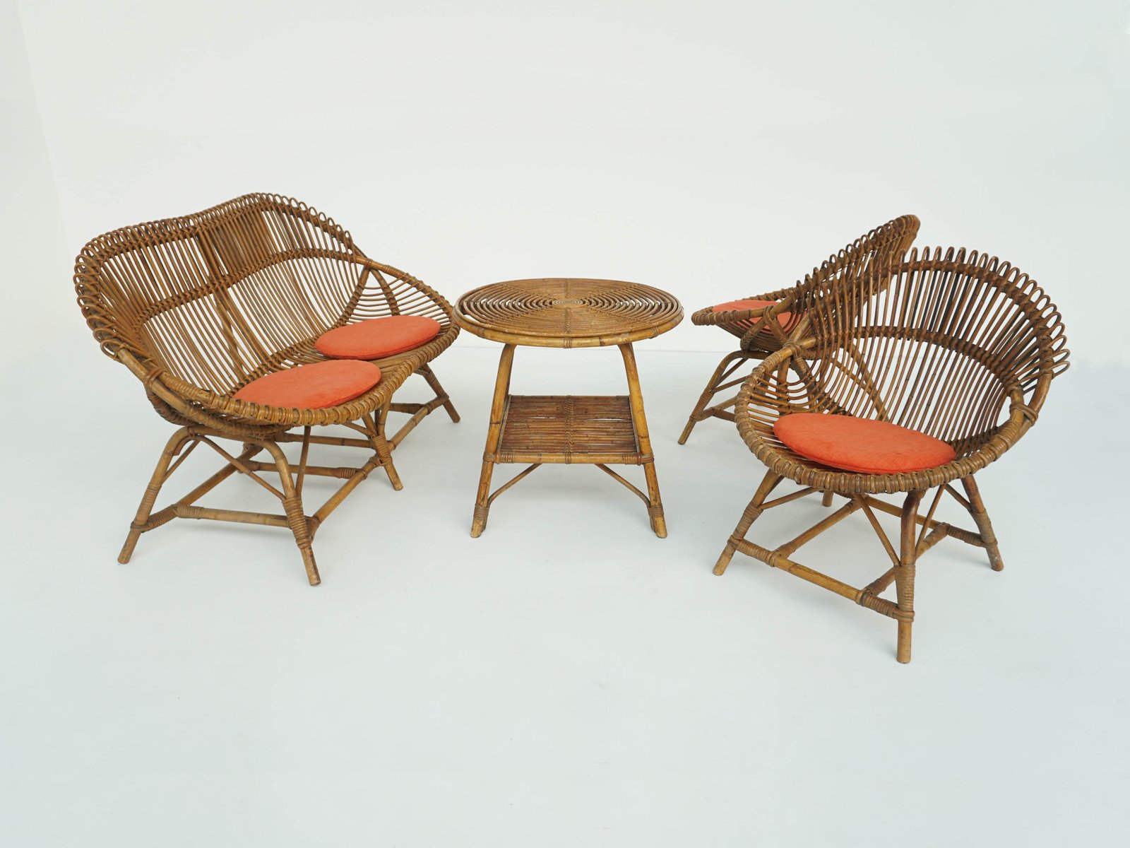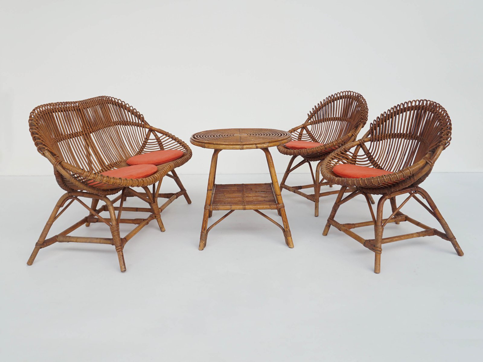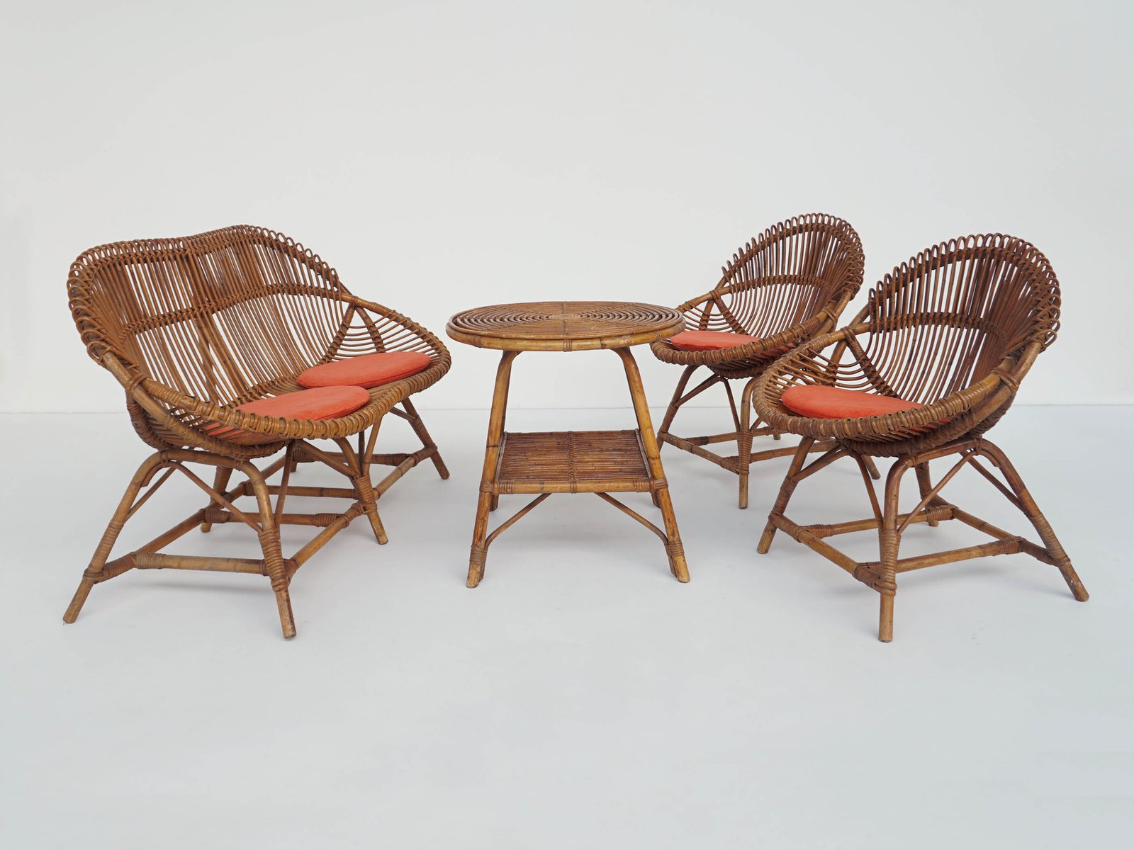Small Italian Bamboo Living Room Set, 1960s, Set of 4