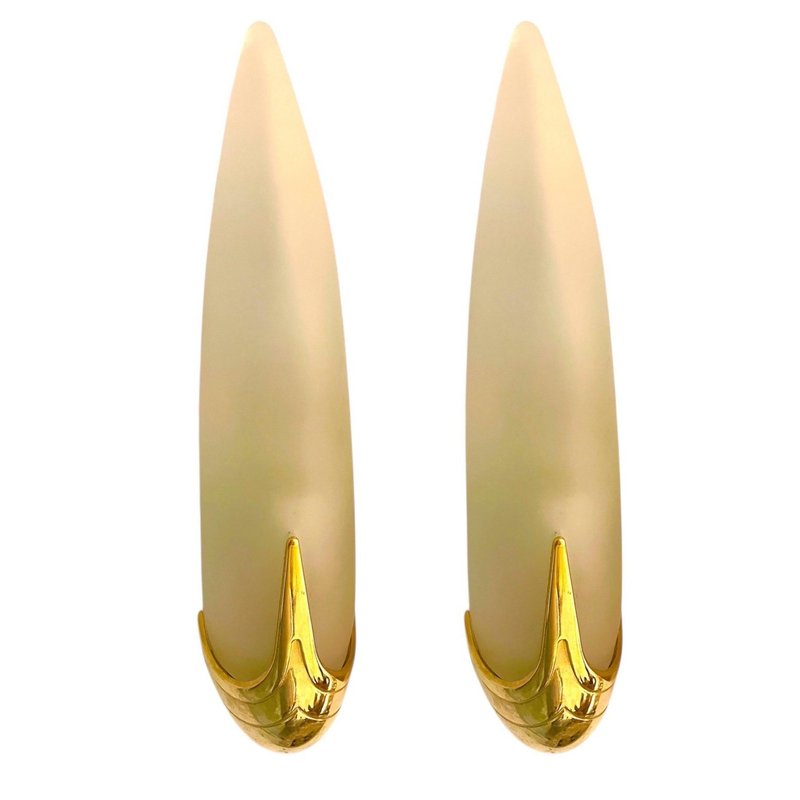 Smoked Glass and Gilt Metal Wall Lights from Idearte, Spain, 1980s, Set of 2