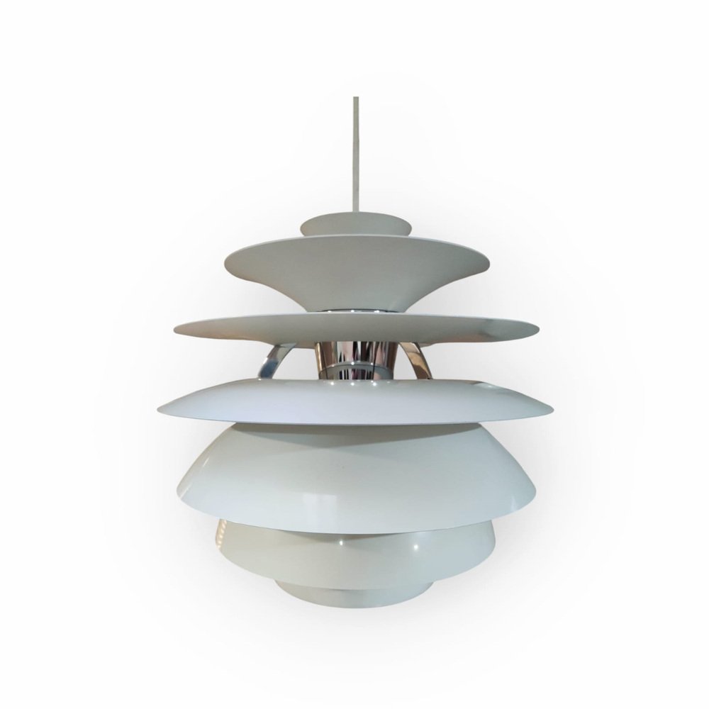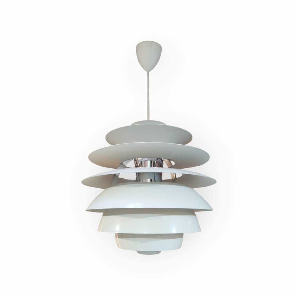 In 1924, Kaastrup-Olsen began collaborating with Danish architect Poul Henningsen (1894-1967) on the design of an innovative, three-shade lamp system, after Henningsen was chosen to participate in the legendary Exposition Internationale des Arts Décoratifs et Industriels Modernes to be held the following year in Paris. Henningsen won the gold medal there, and his work with the Louis Poulsen & Co. grew into a lifelong collaboration that remains the foundation of its ongoing production today.