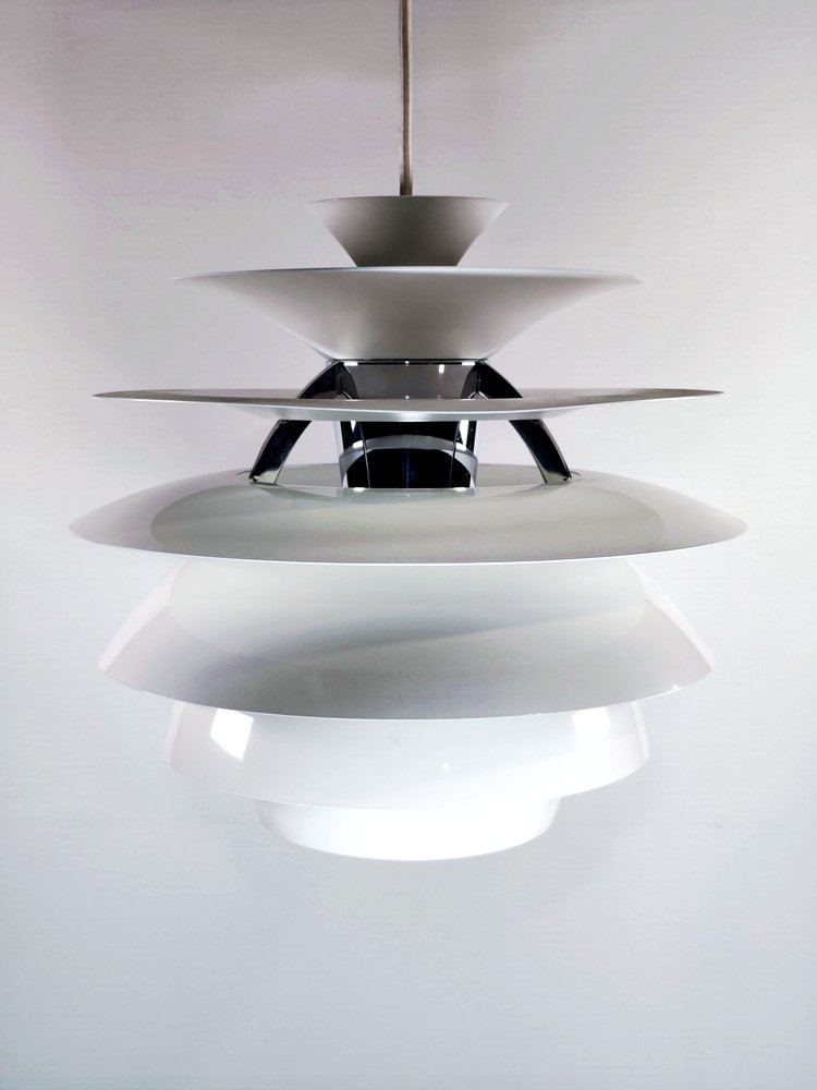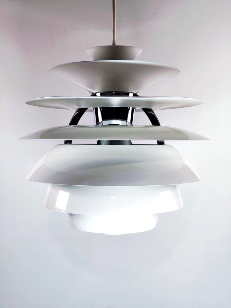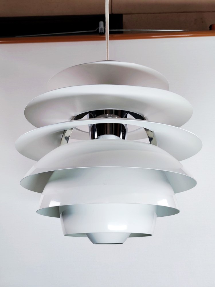 Henningsen was obsessed with light and considered himself a “lighting architect.” With his PH Lamp series, he sought to create glare-free yet direct light where it was most needed, accompanied by soft shadows, lit by the then-new incandescent bulbs. He did not just design a light, but an entire system; around a thousand different models have been designed over the years. Pioneering and timeless classics such as Henningsen’s Artichoke Lamp (1958) and the PH5 (1958), as well as fellow Danish designer Verner Panton’s Ceiling Flower Pot lamp (1968) and Panthella table lamp (1971), are considered to be among the most iconic Scandinavian contributions to modern design culture.