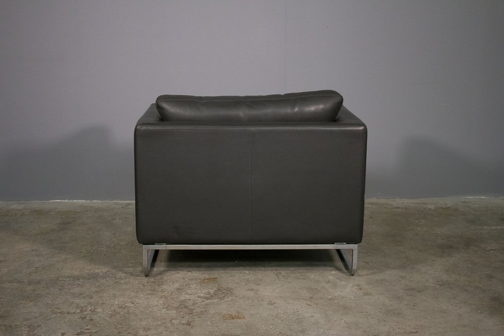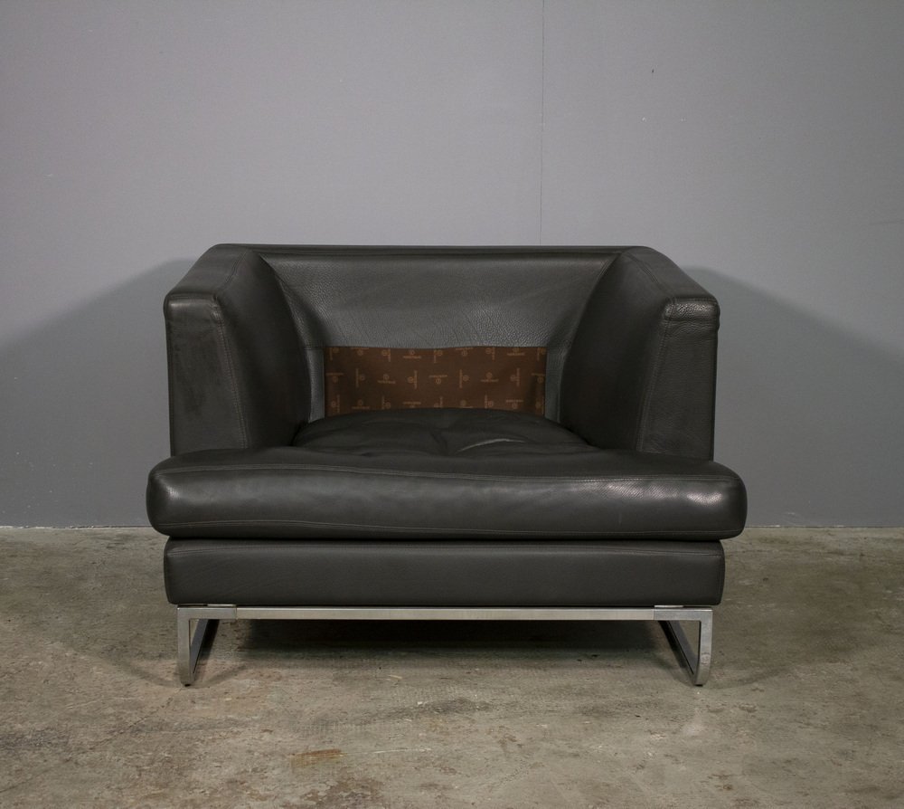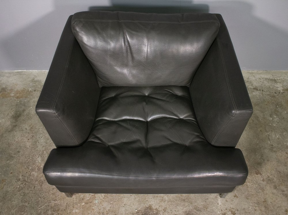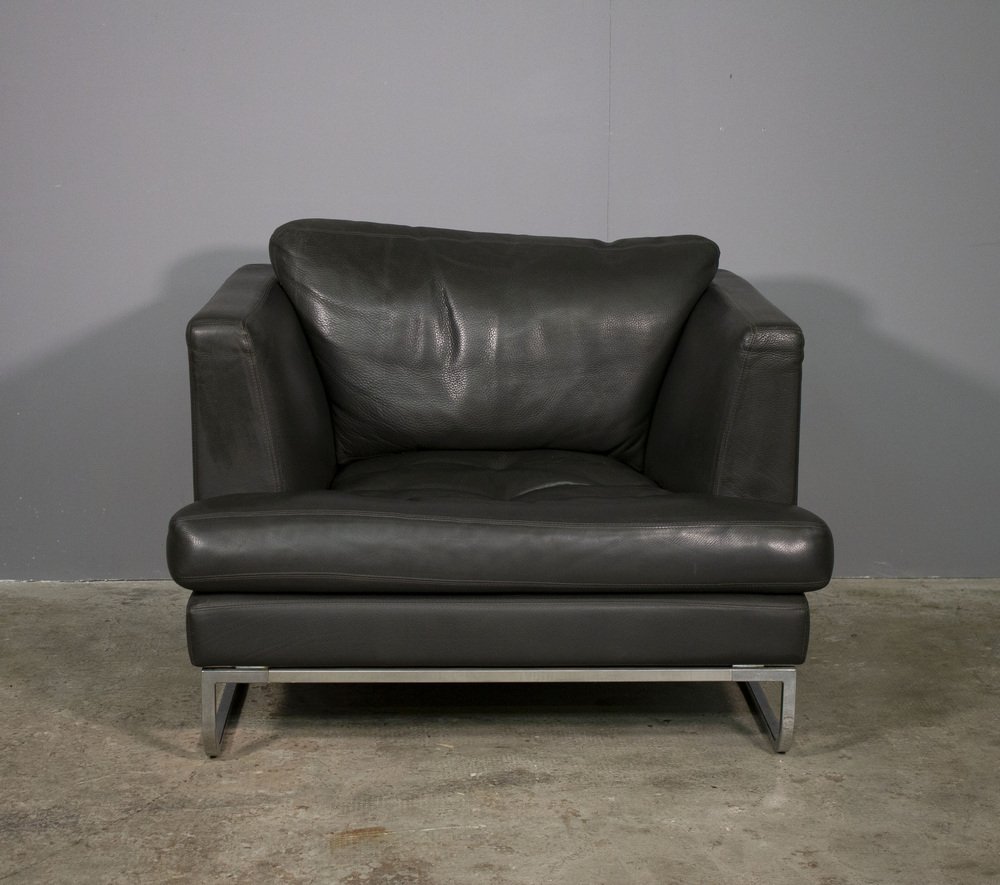 Sofa and Lounge Chair in Anthracite Leather from Valdichienti, 1970s, Set of 2