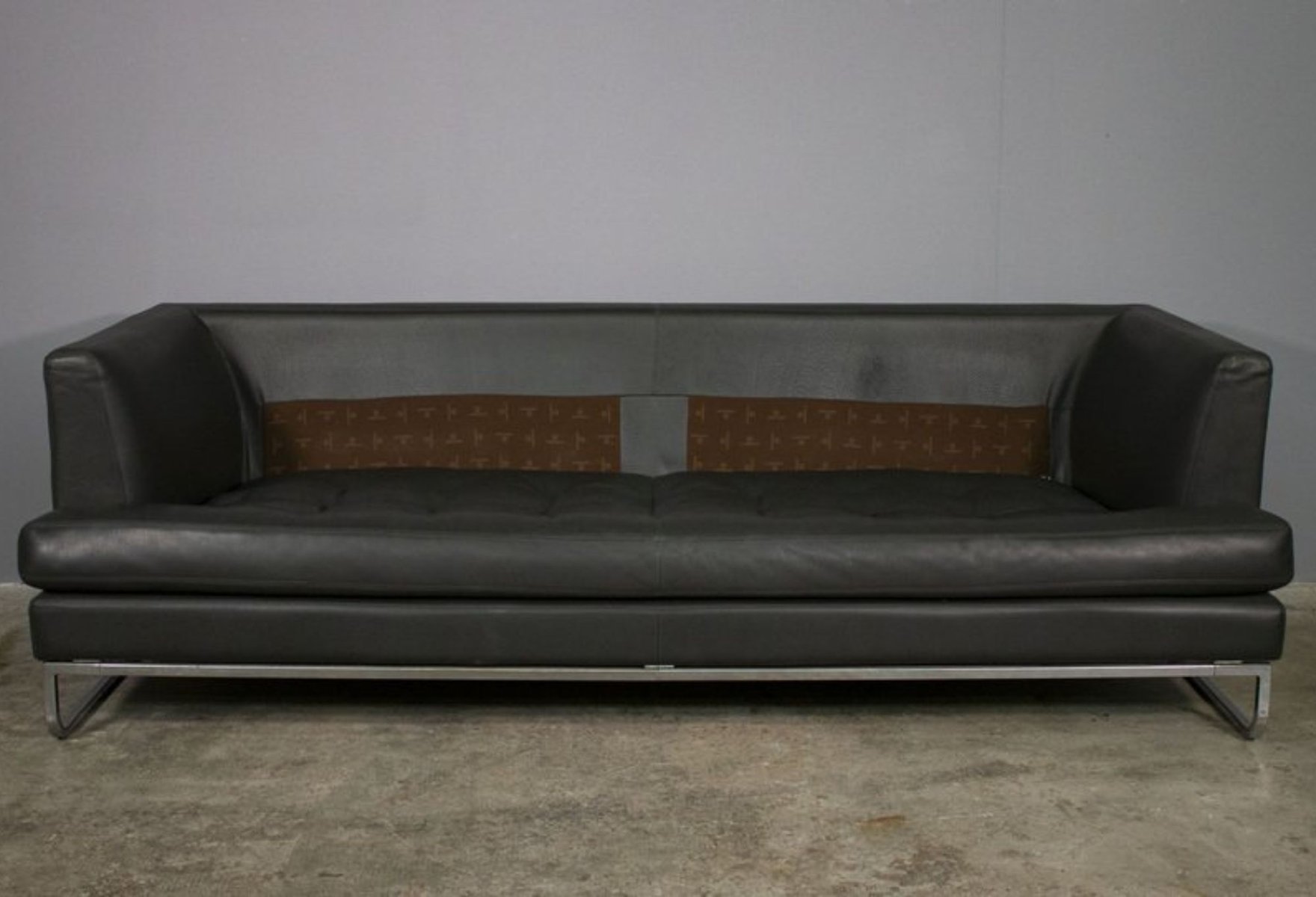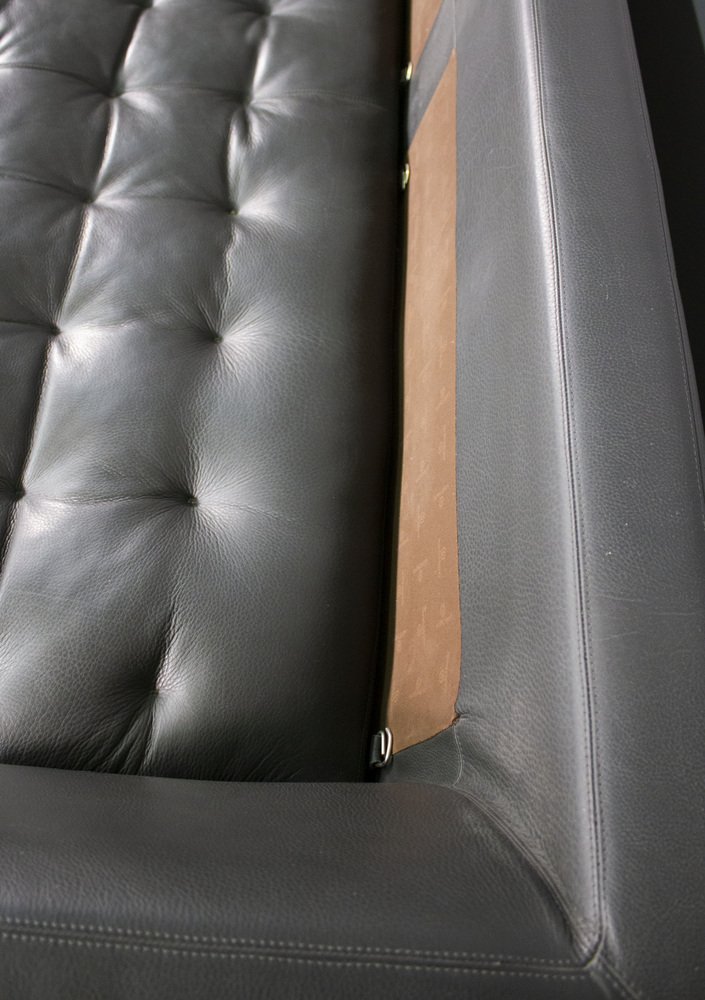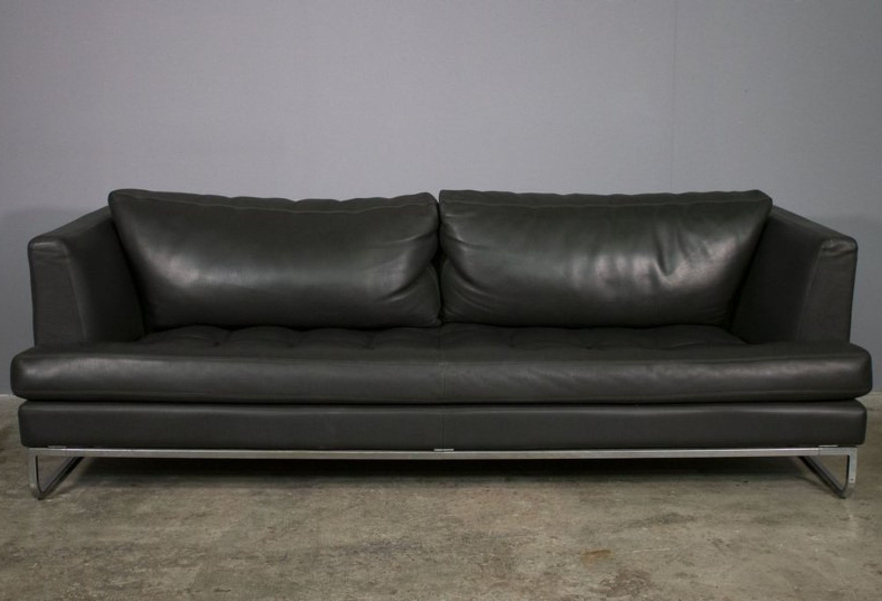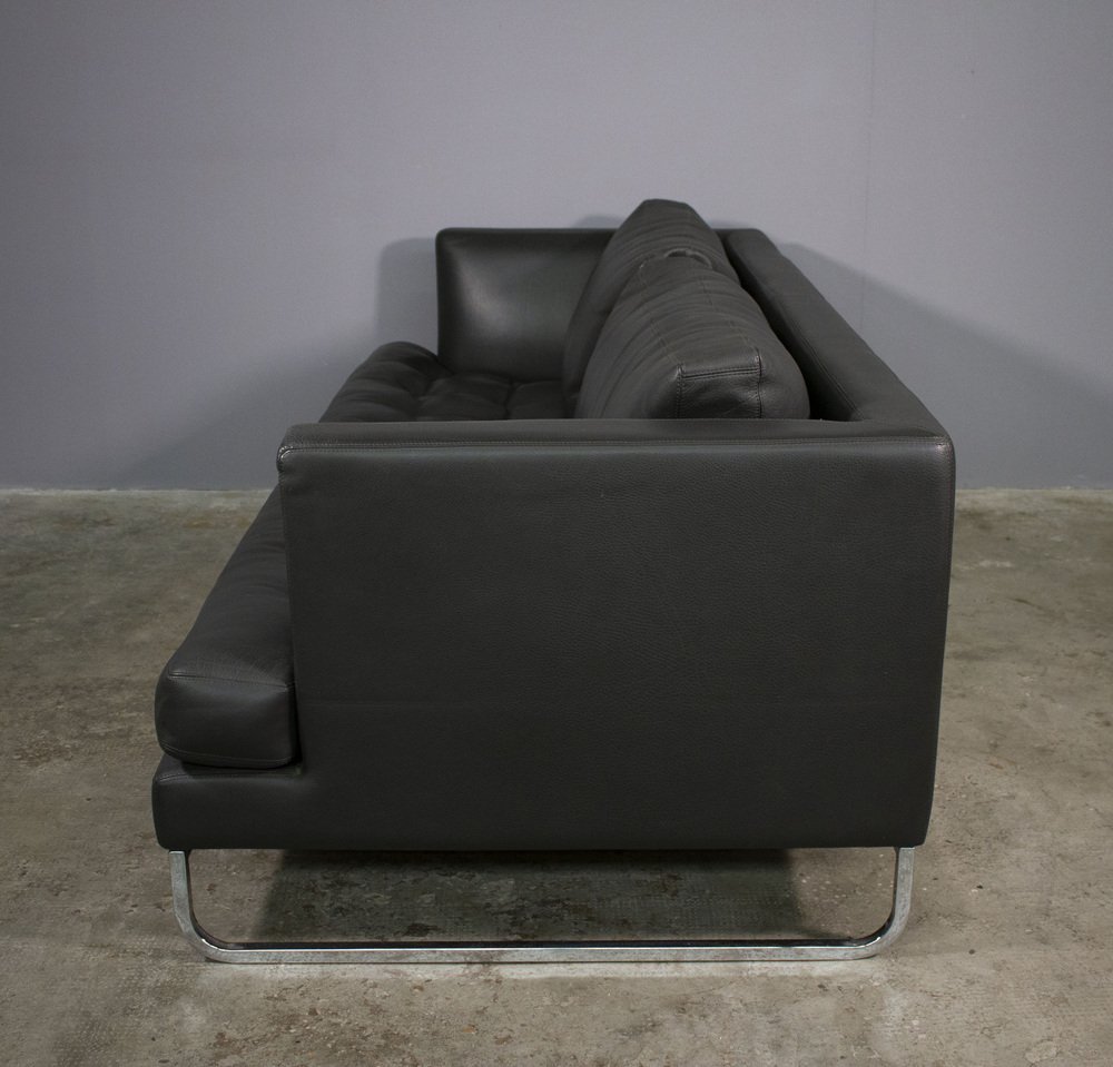 Sofa and Lounge Chair in Anthracite Leather from Valdichienti, 1970s, Set of 2
