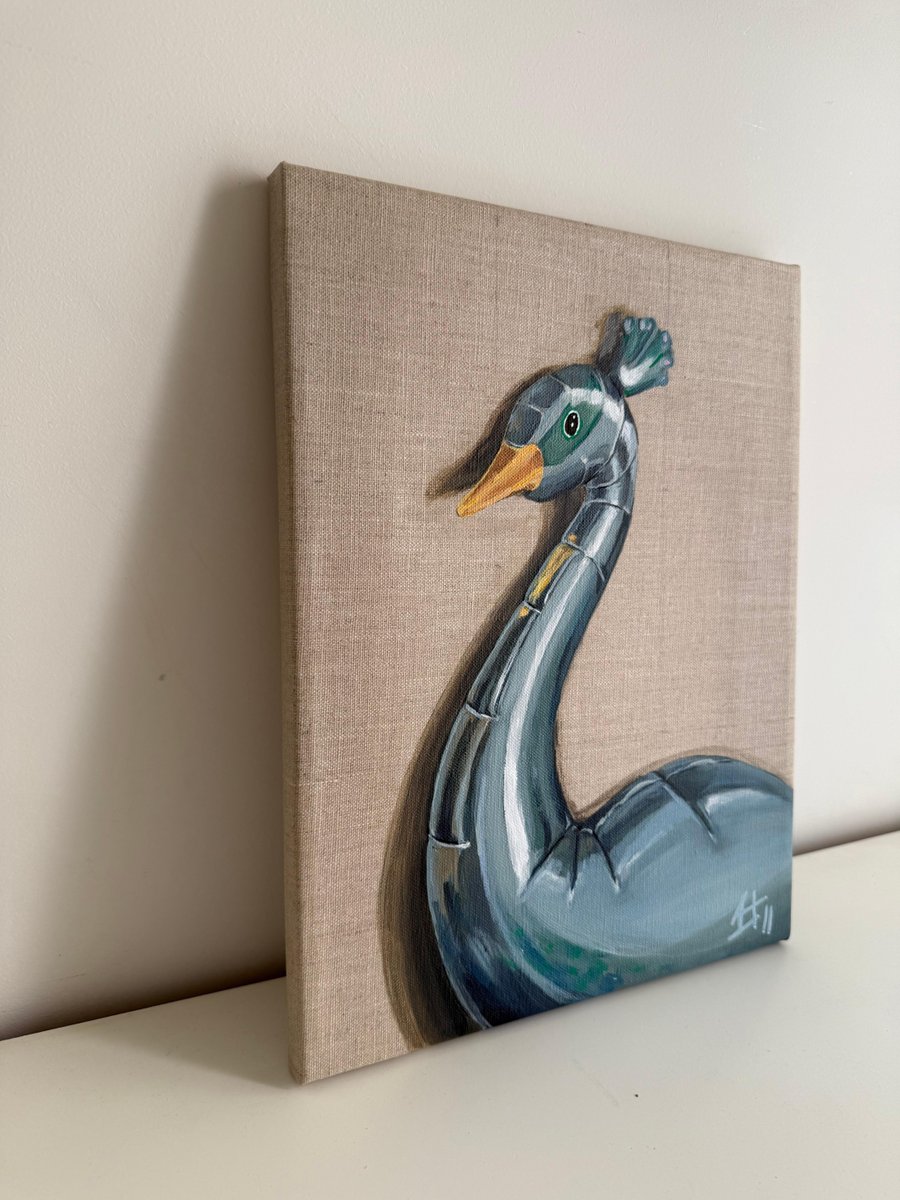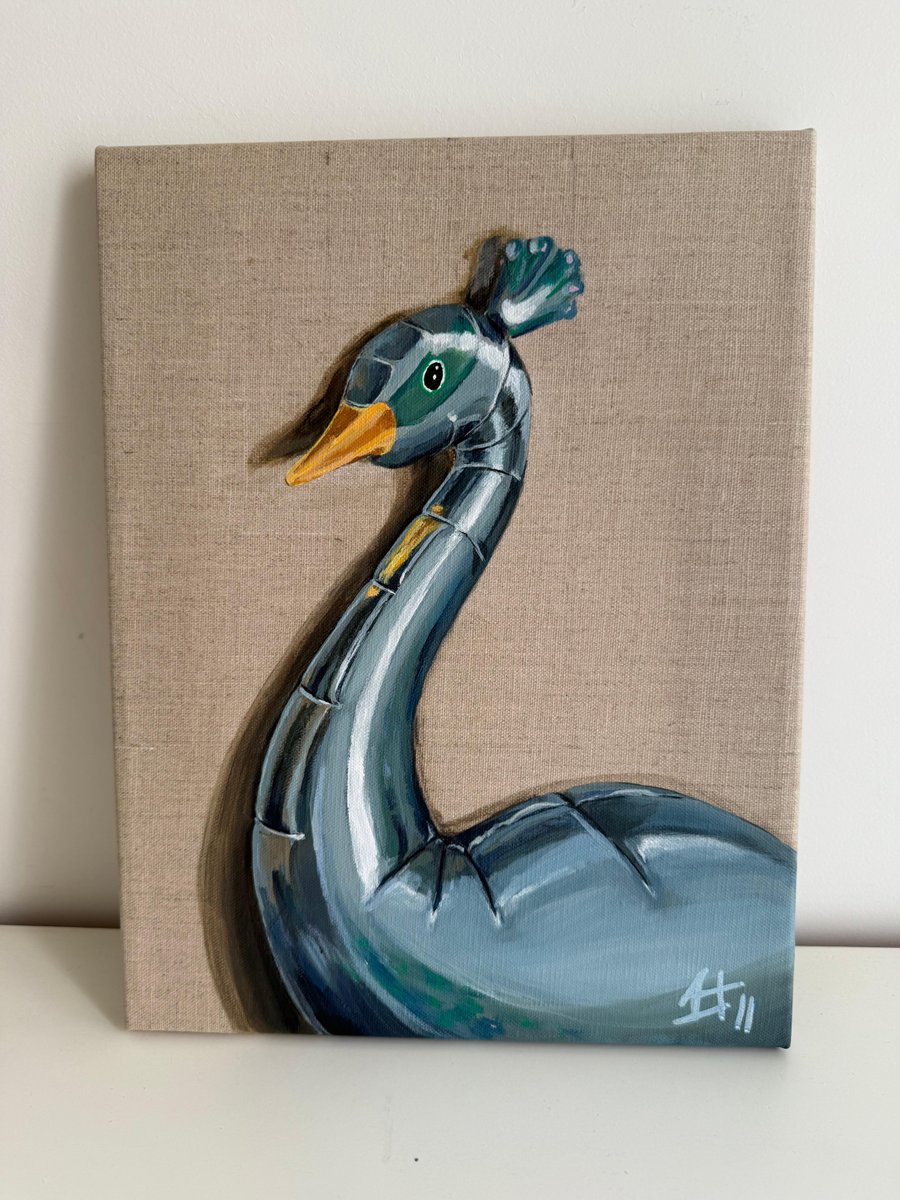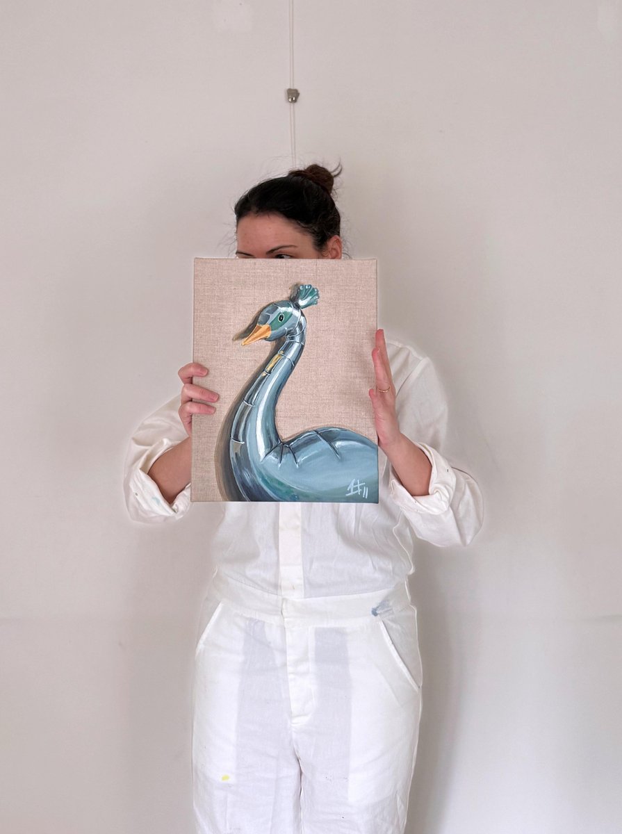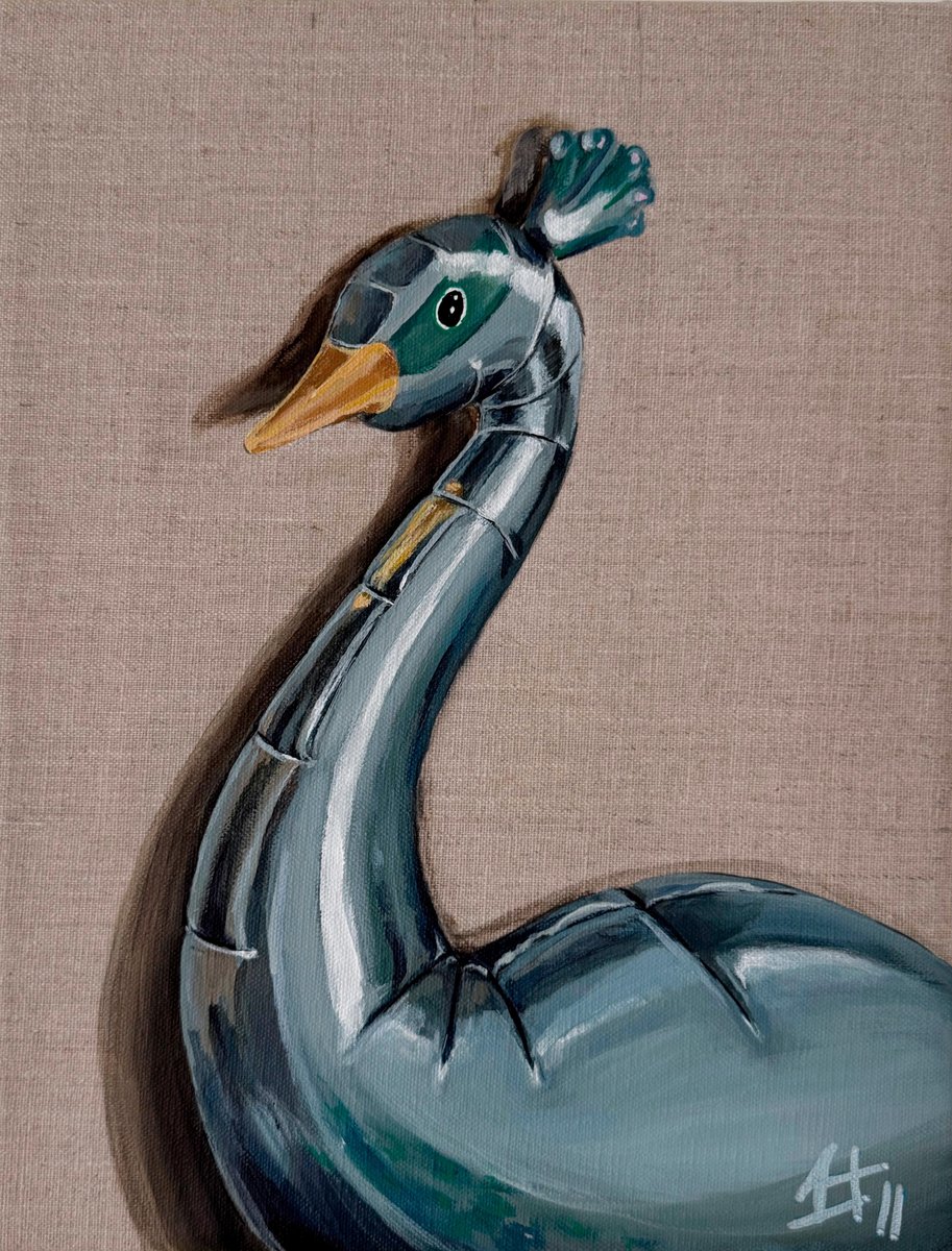 Sofía Cristina Jiménez, Inflatable Peacock Portrait: Lady Phasi 3, 2024, Acrylic on Unprimed Linen