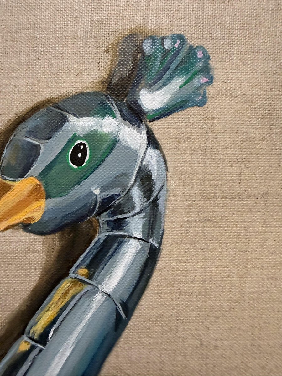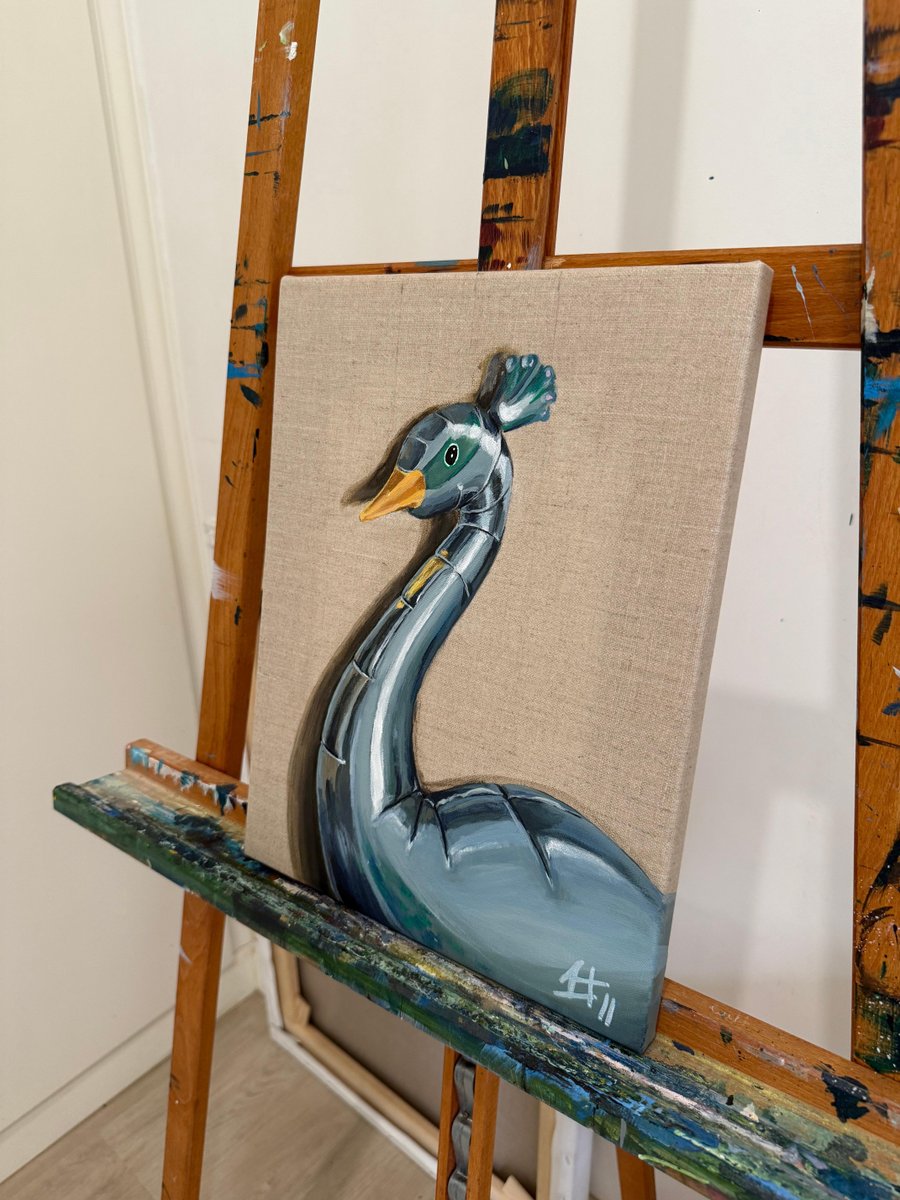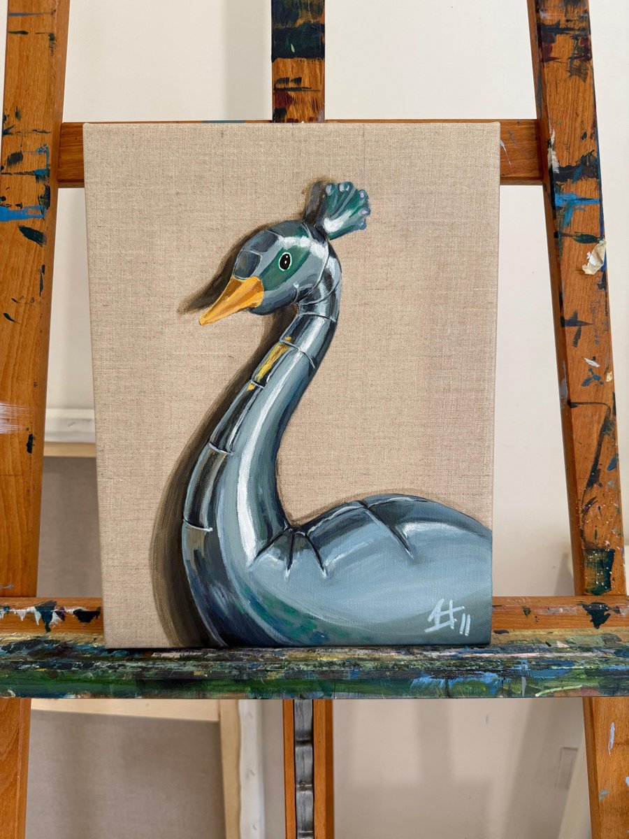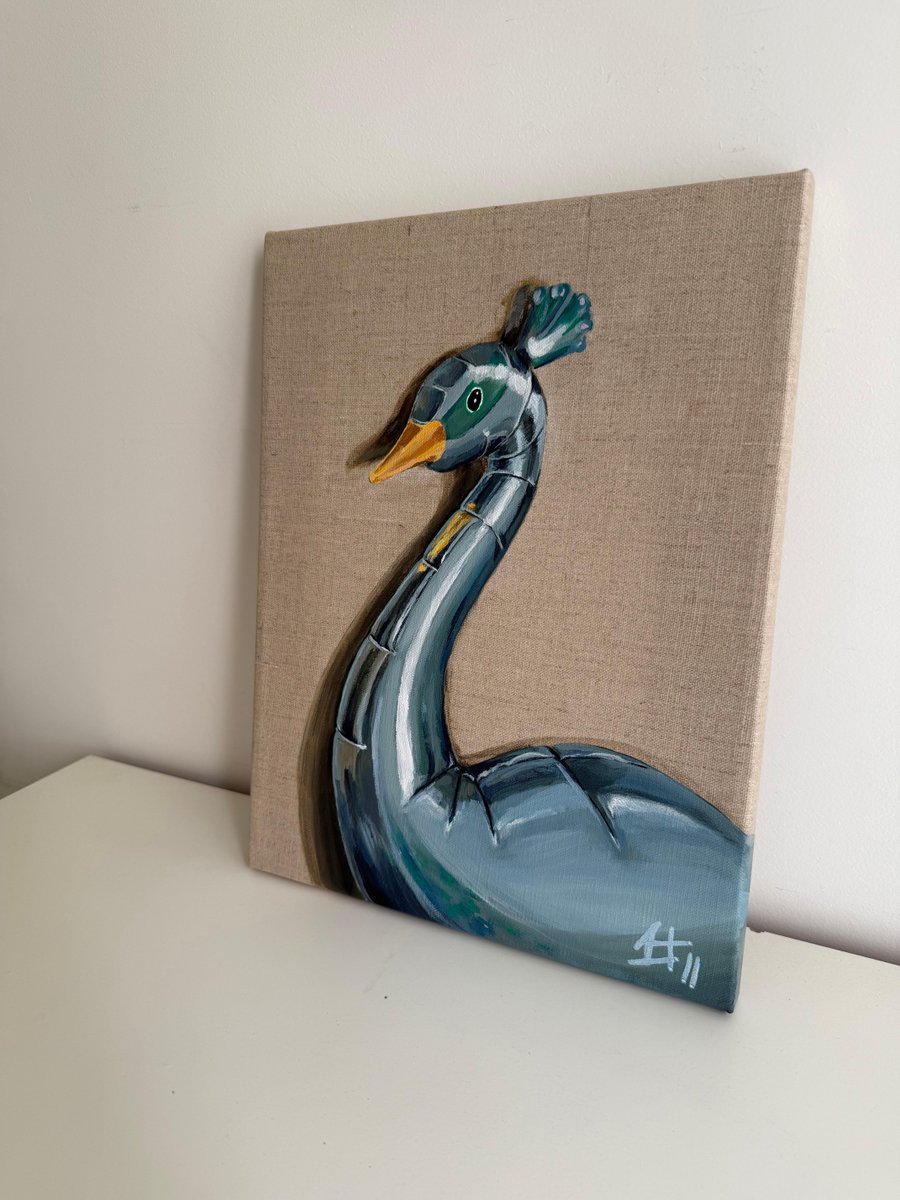 Sofía Cristina Jiménez, Inflatable Peacock Portrait: Lady Phasi 3, 2024, Acrylic on Unprimed Linen