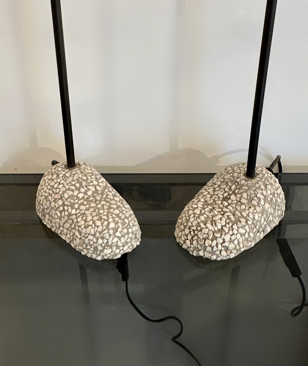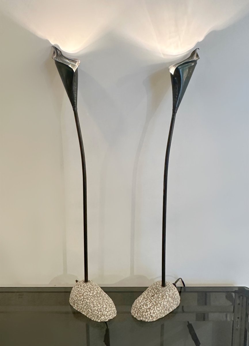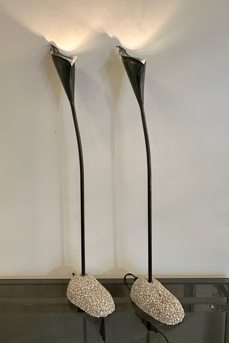 Spanish Bronze Lilly Shaped Lamps with Stone Bases, 1980, Set of 2