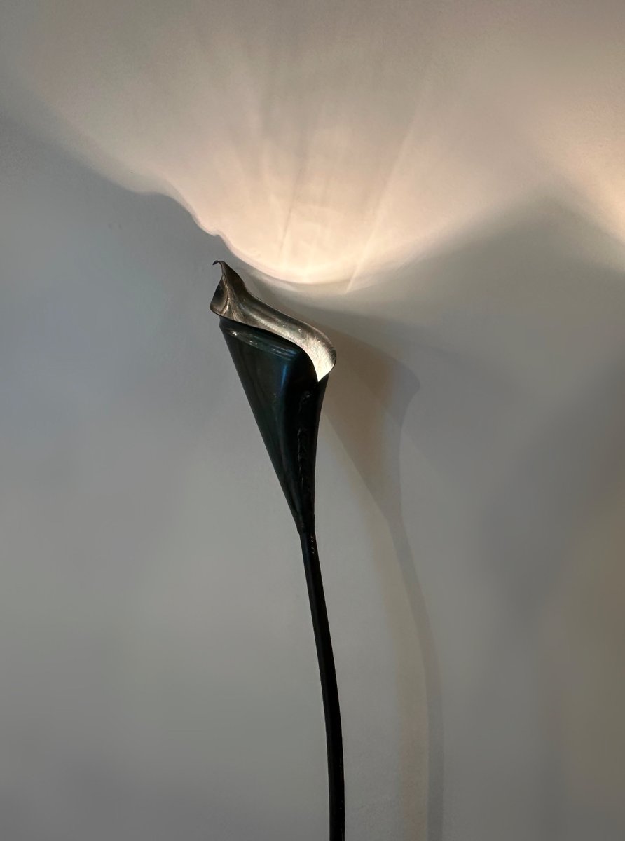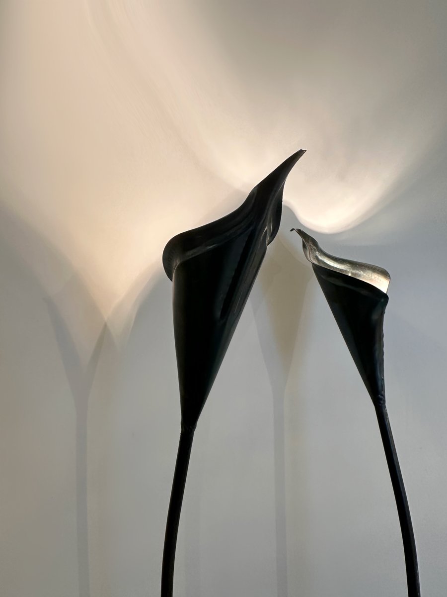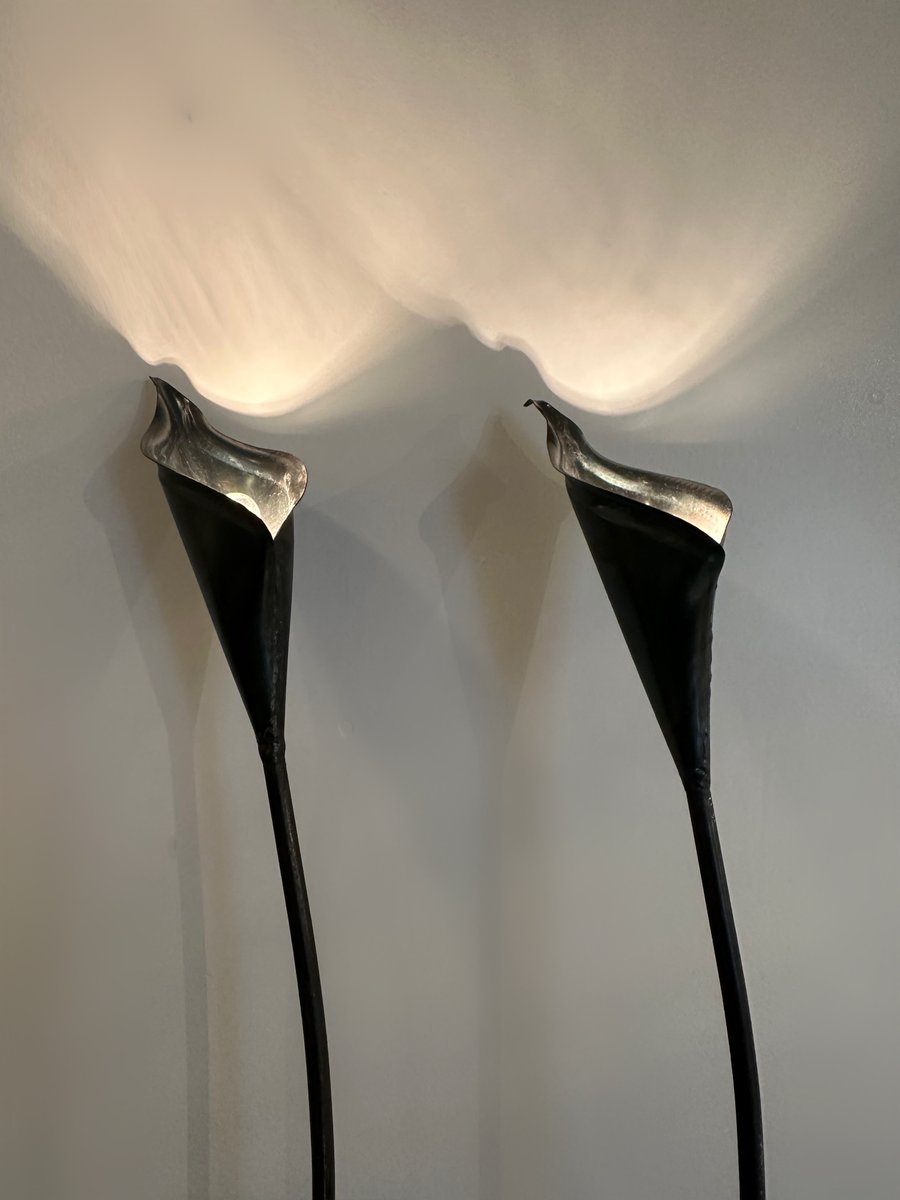 Spanish Bronze Lilly Shaped Lamps with Stone Bases, 1980, Set of 2