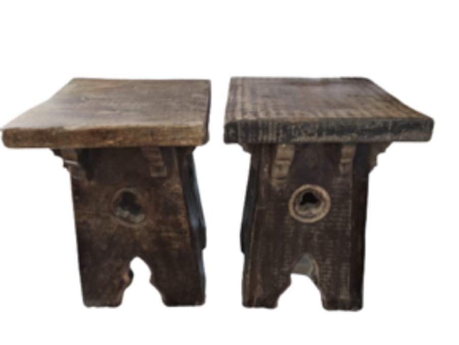 Spanish Brutalist Oak Stool