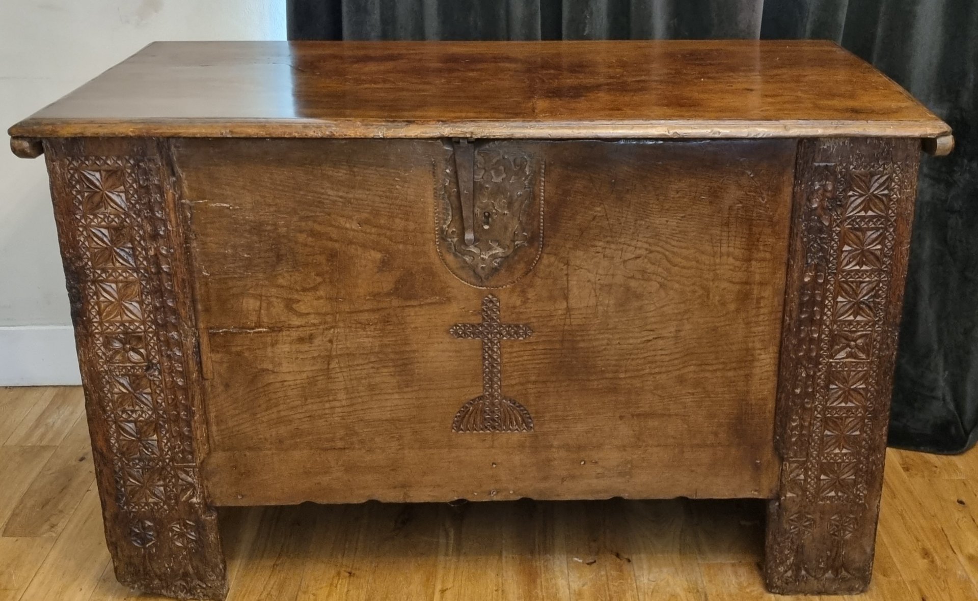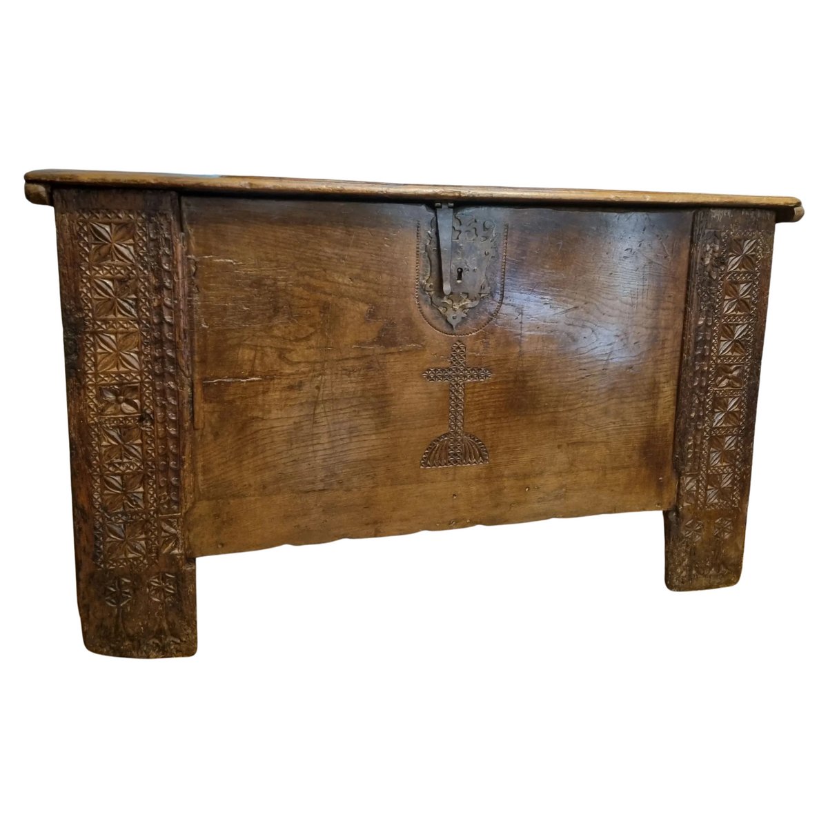 Spanish Gothic Oak Chest, 1600s
