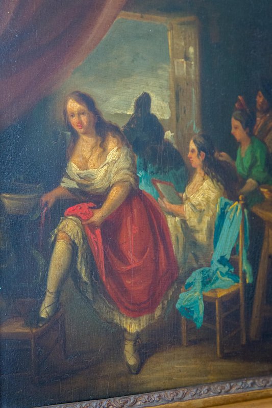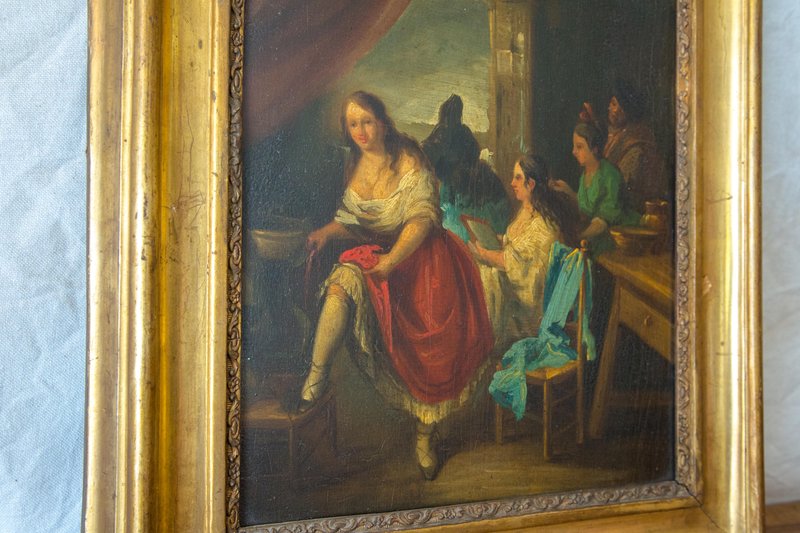Spanish School Artist, Young Woman at Her Toilette, 19th Century, Oil on Panel
