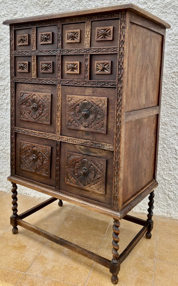 Spanish Wooden Storage Cabinet with Drawers, 1900s