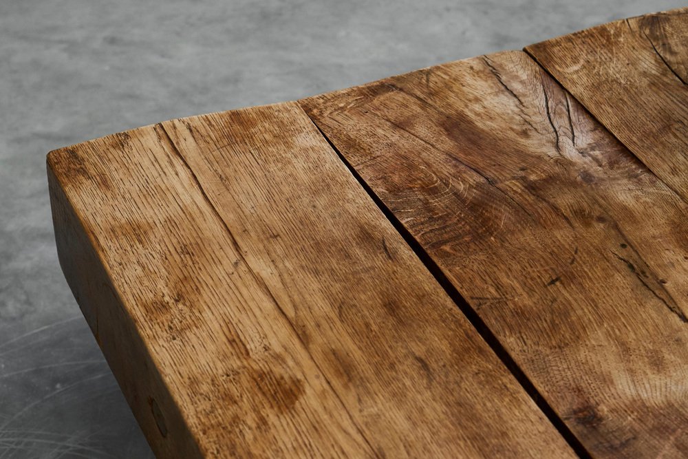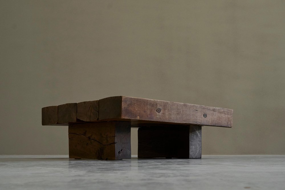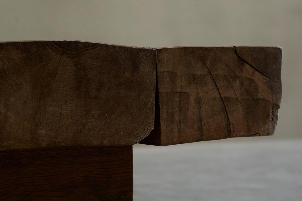 Square Wabi Sabi Style Coffee Table in Oak, 1940s