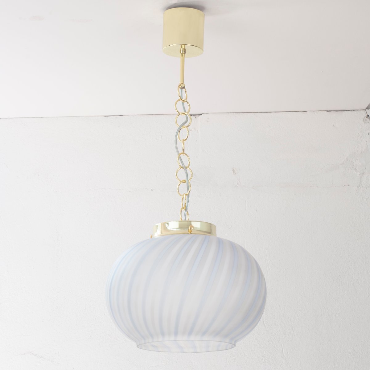 Suspension Light in Satin Glass with White & Turquoise Lines, Italy