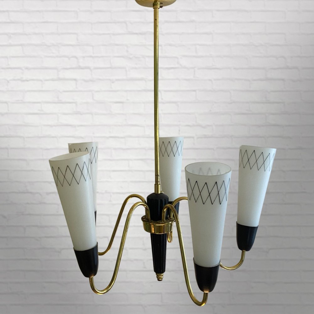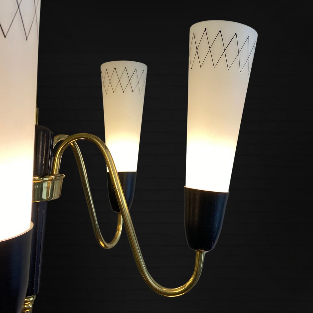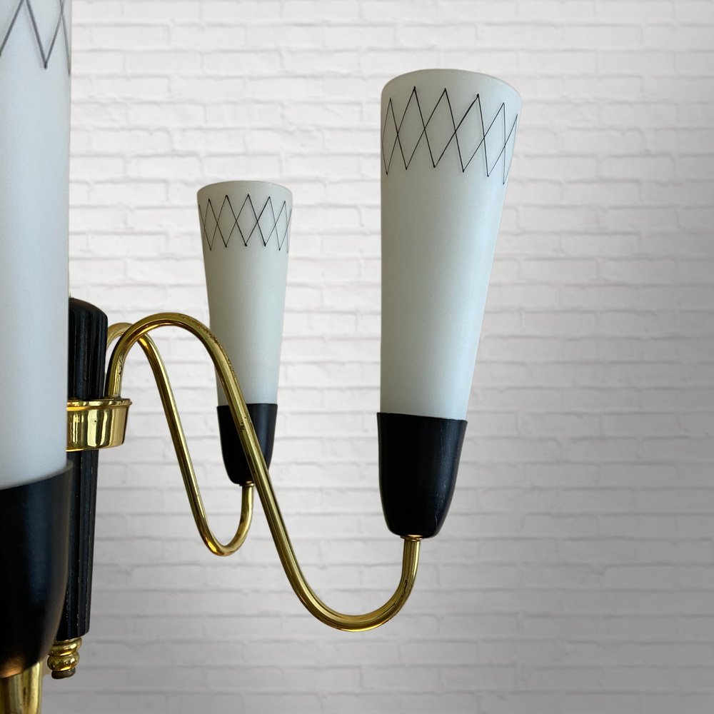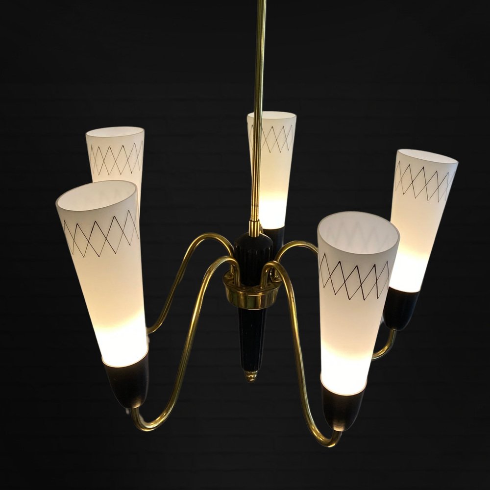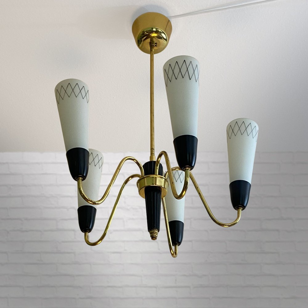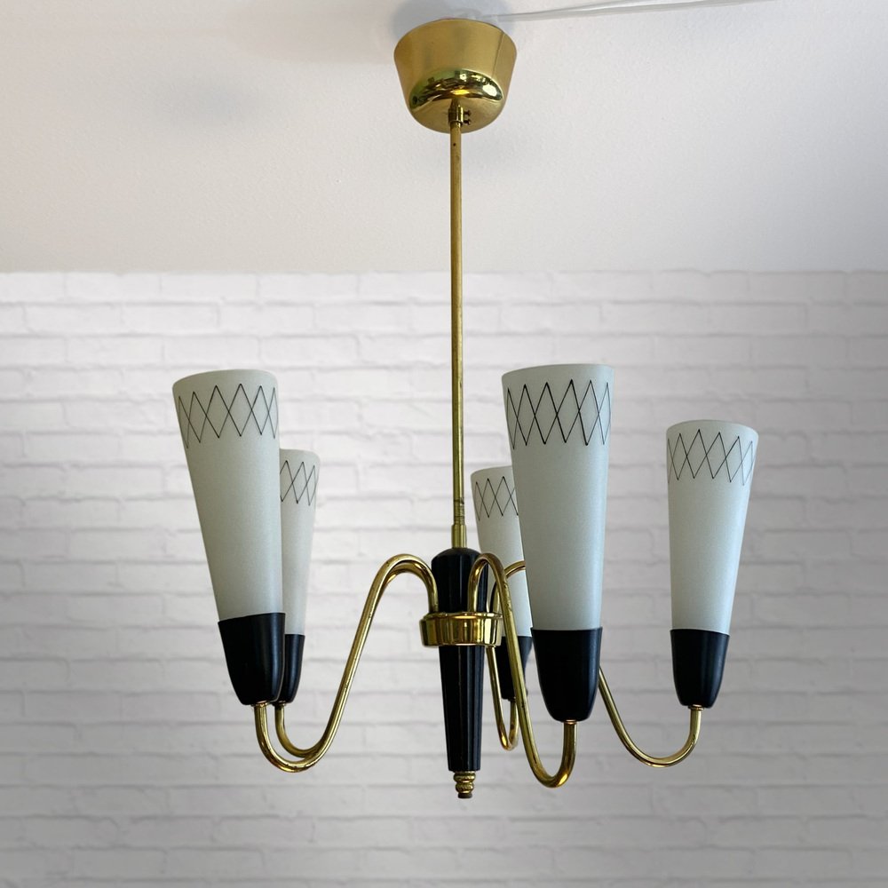 Swedish Modern Chandelier in Brass and Glass, 1950s