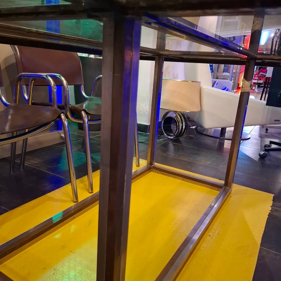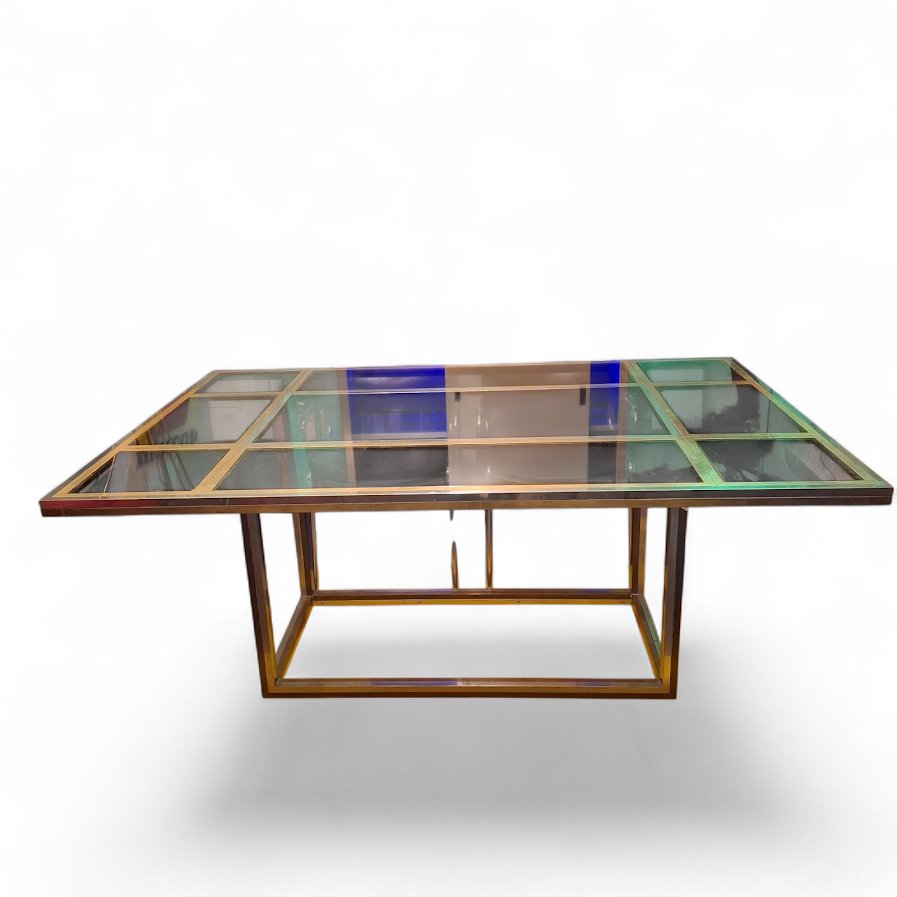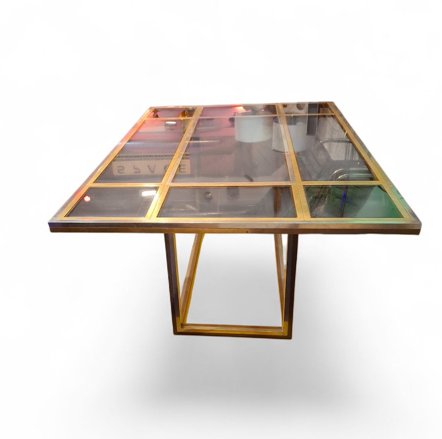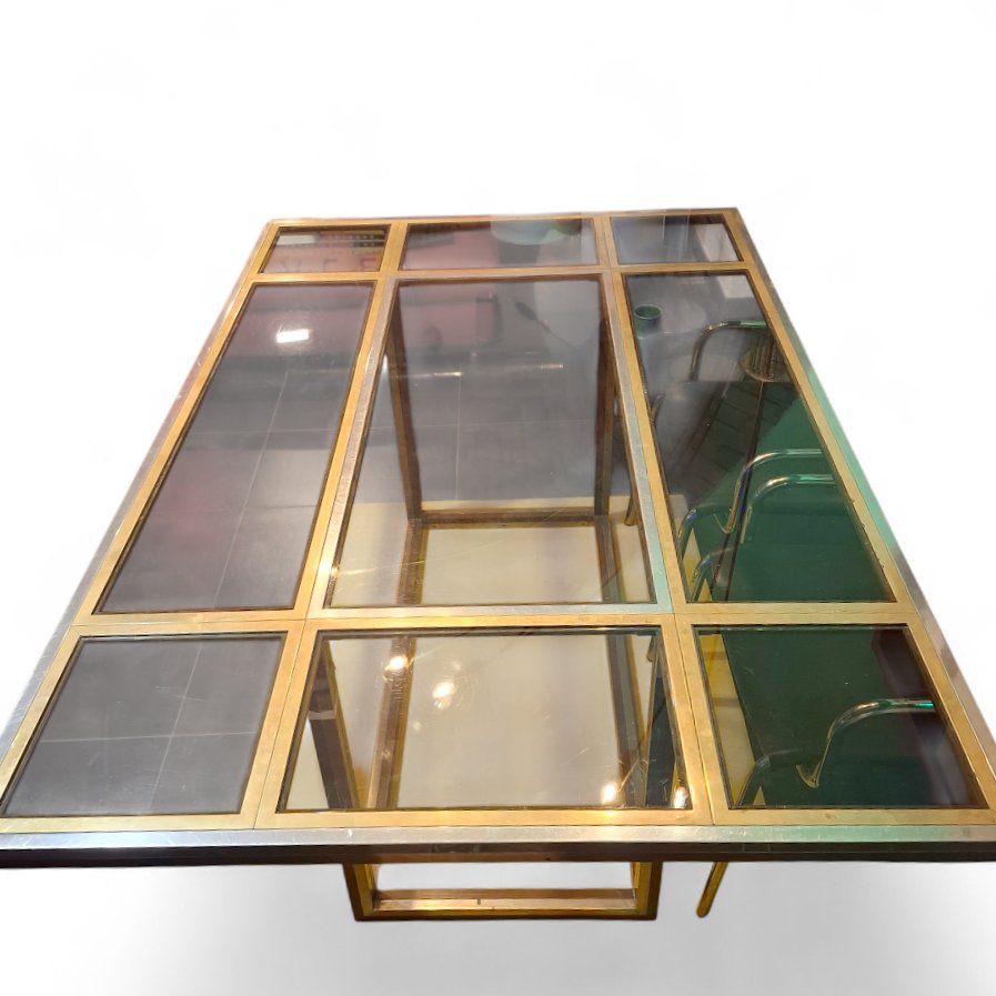 Table in Smoked Glass & Gold-Plated Steel, 1970s