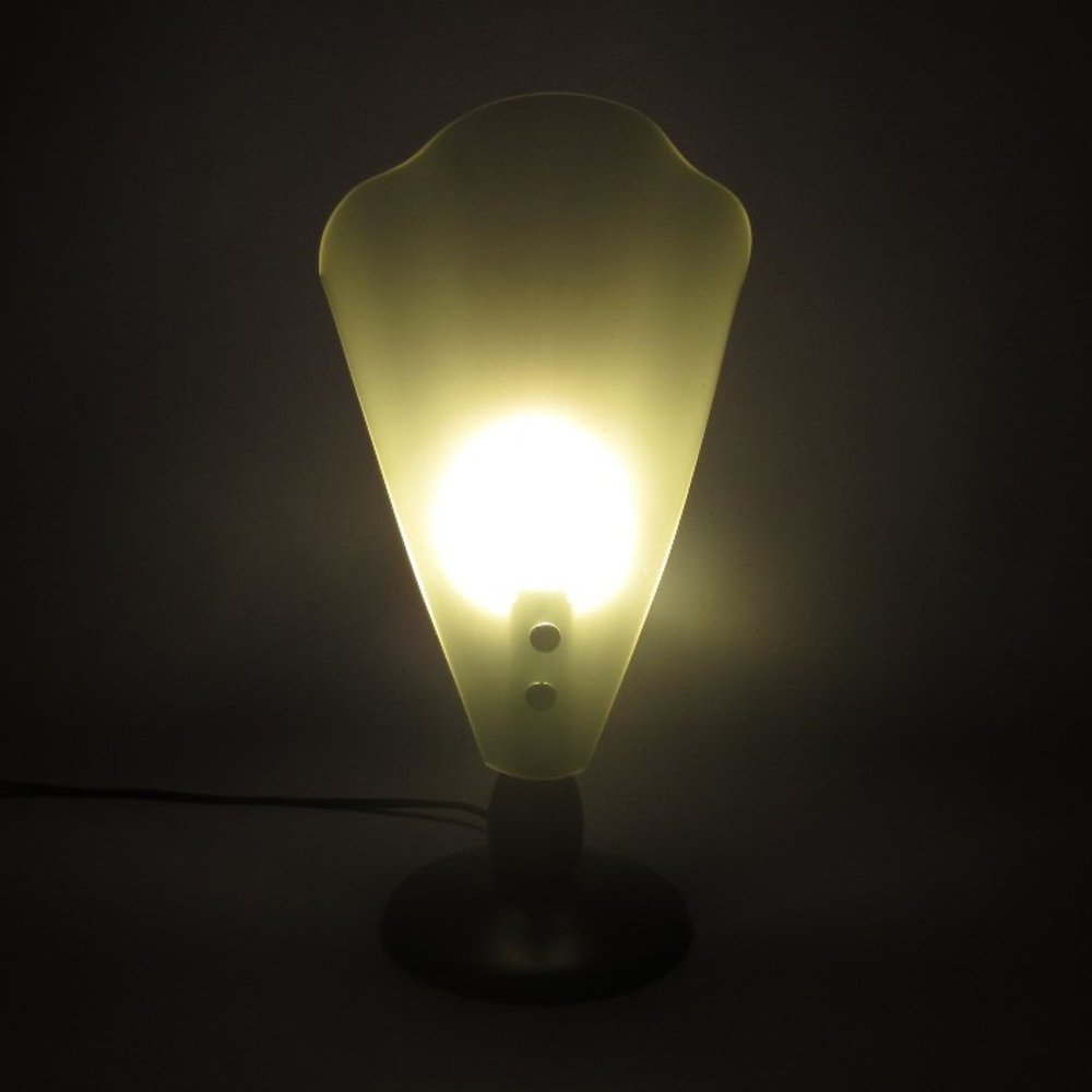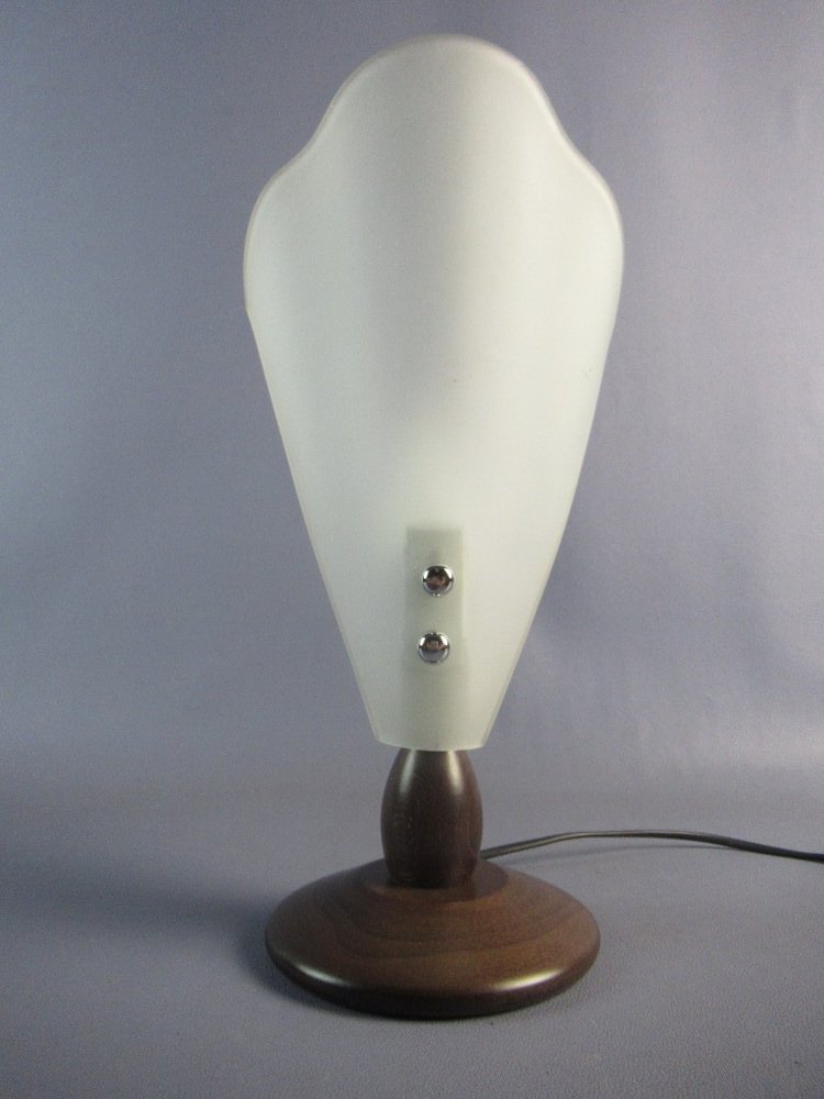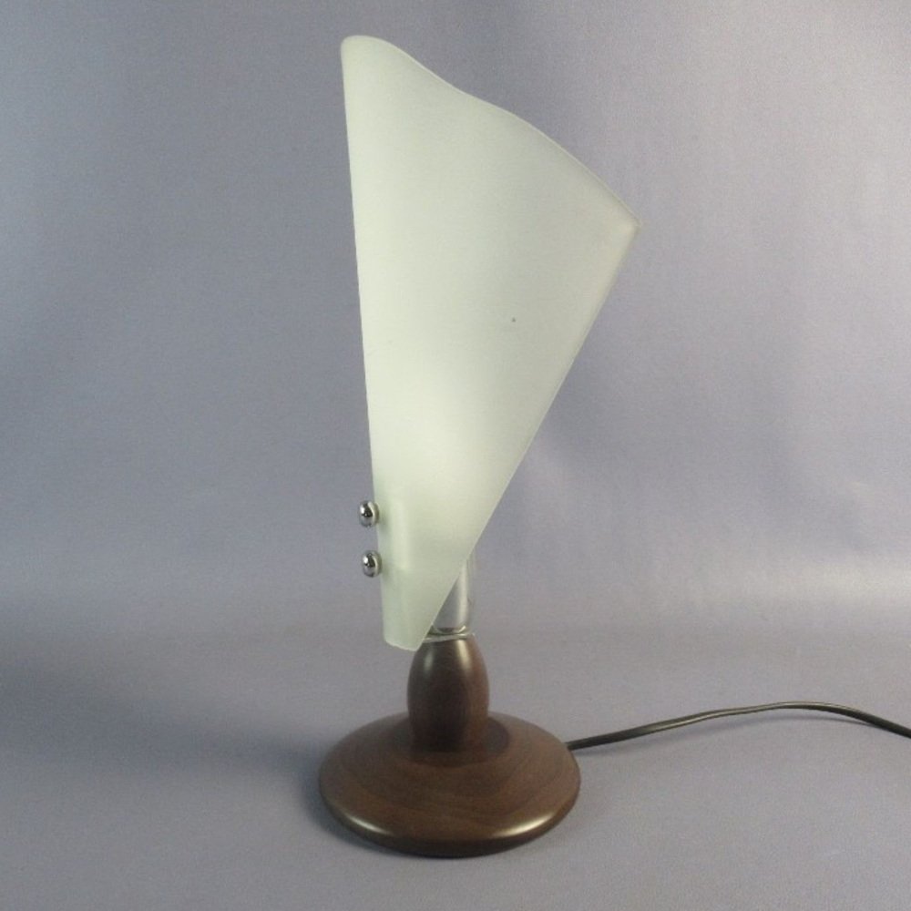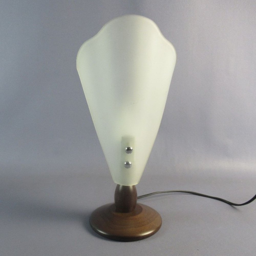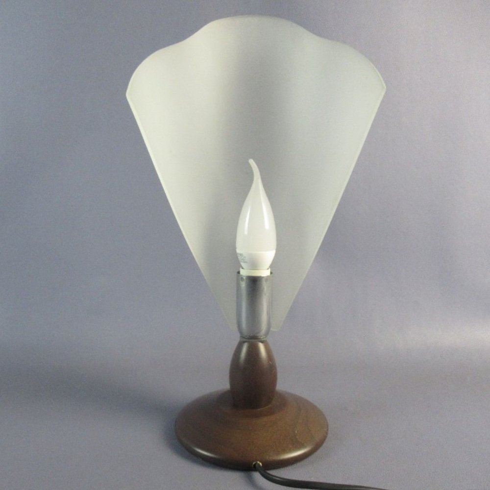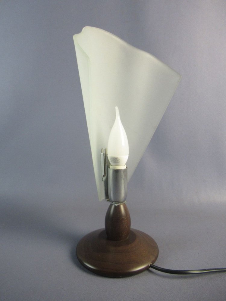 Table Lamp in Folded Satin Glass with Wooden Base, 1970