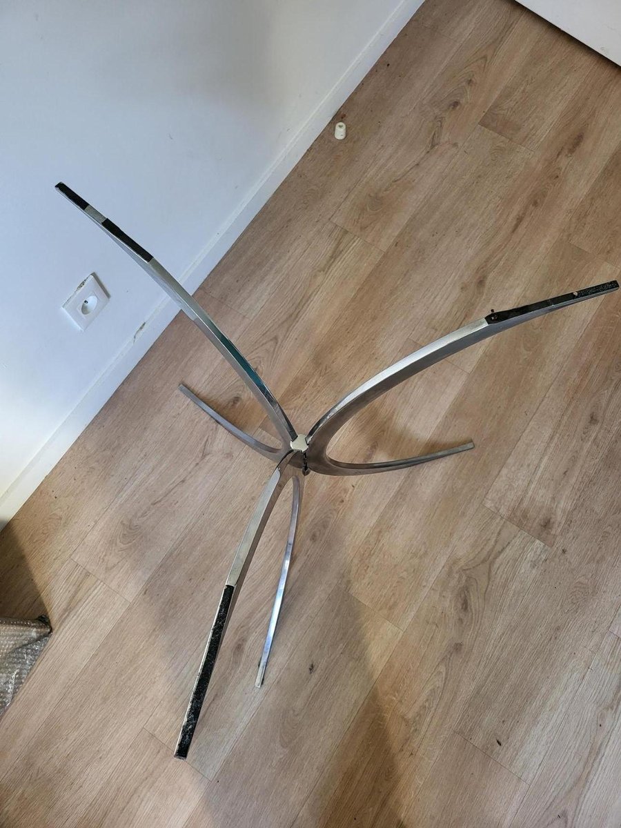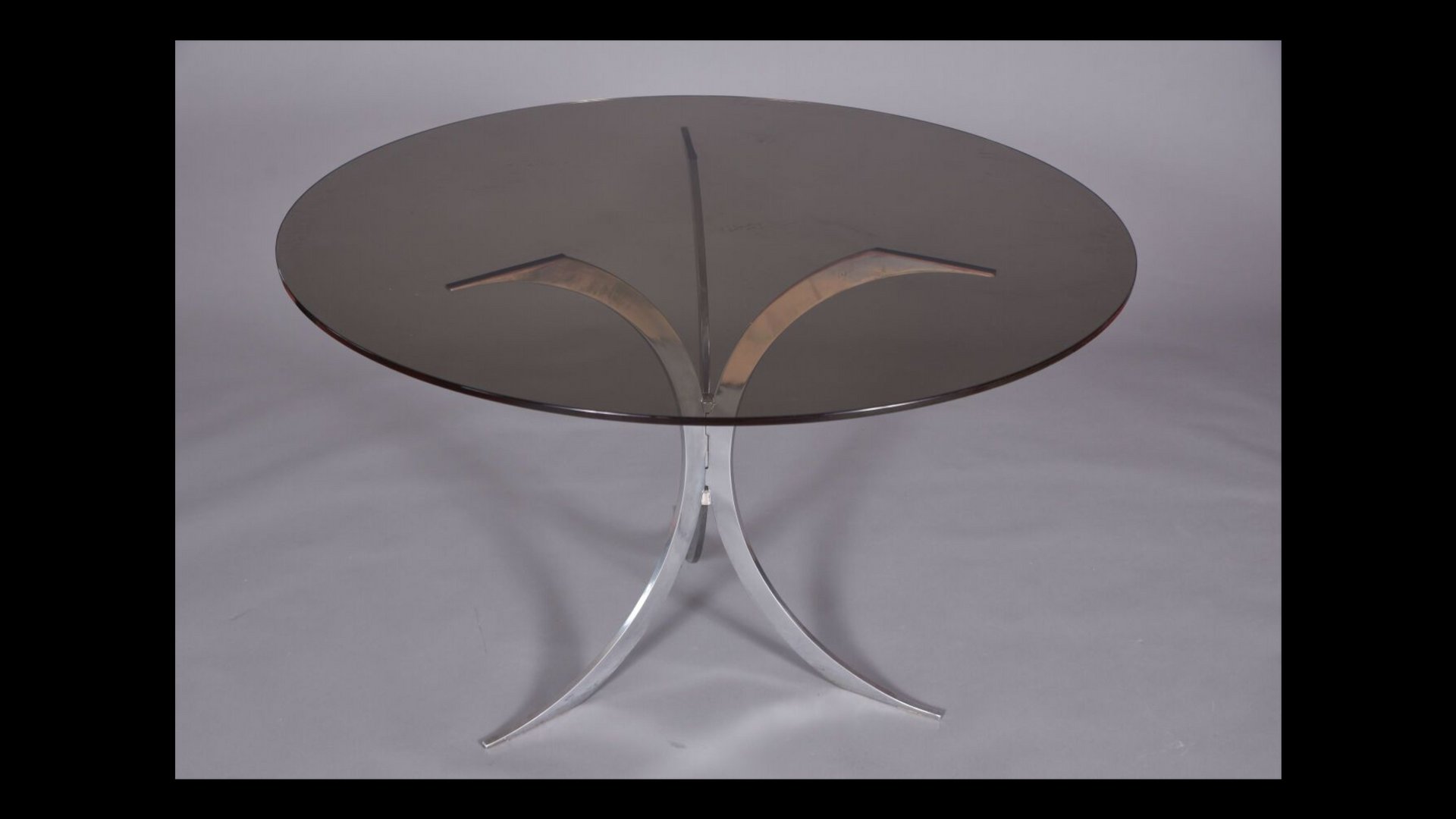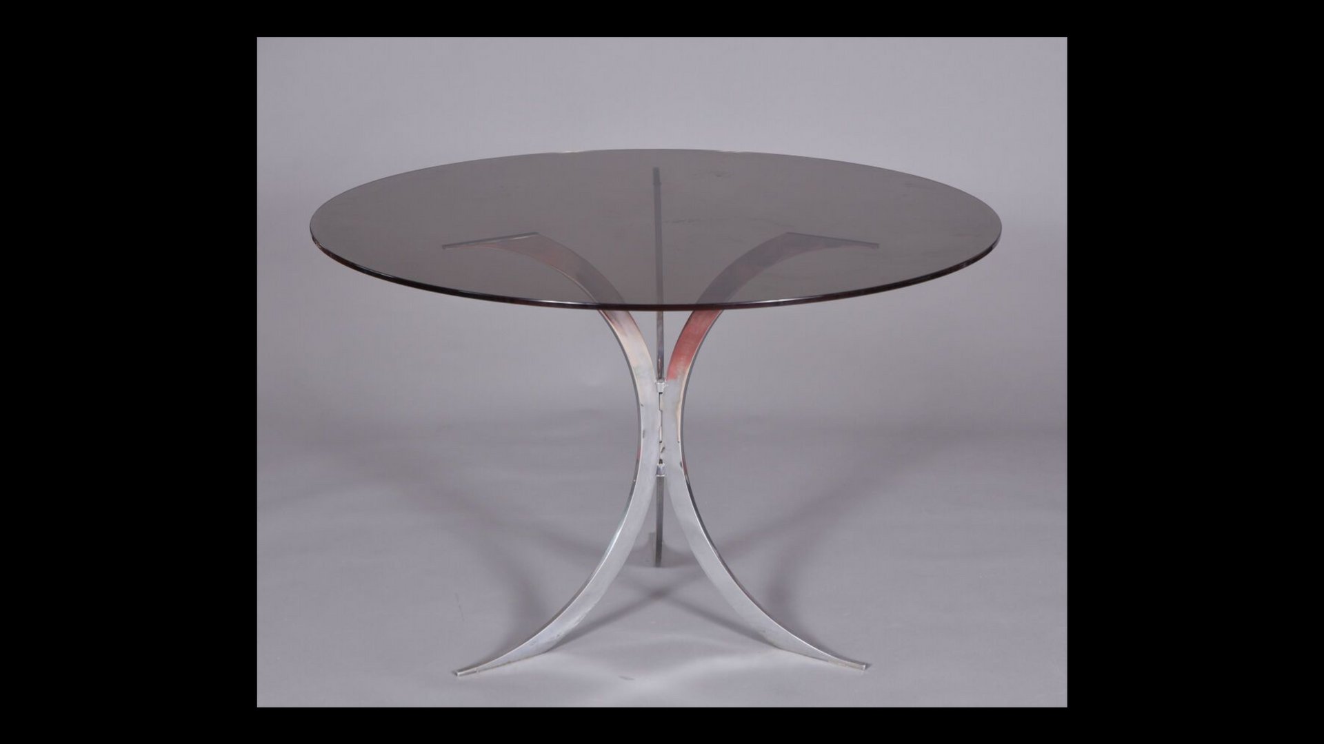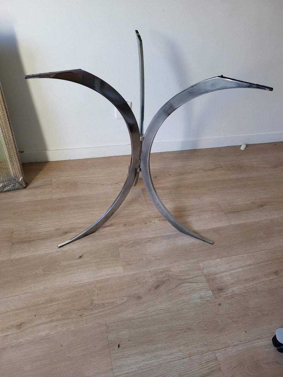 Table with Chrome Metal Feet and Smoked Glass Top attributed to Boris Tabacoff for Christofle, 1970s