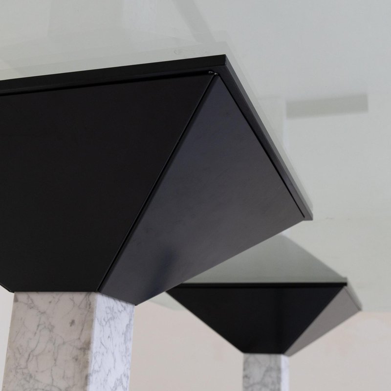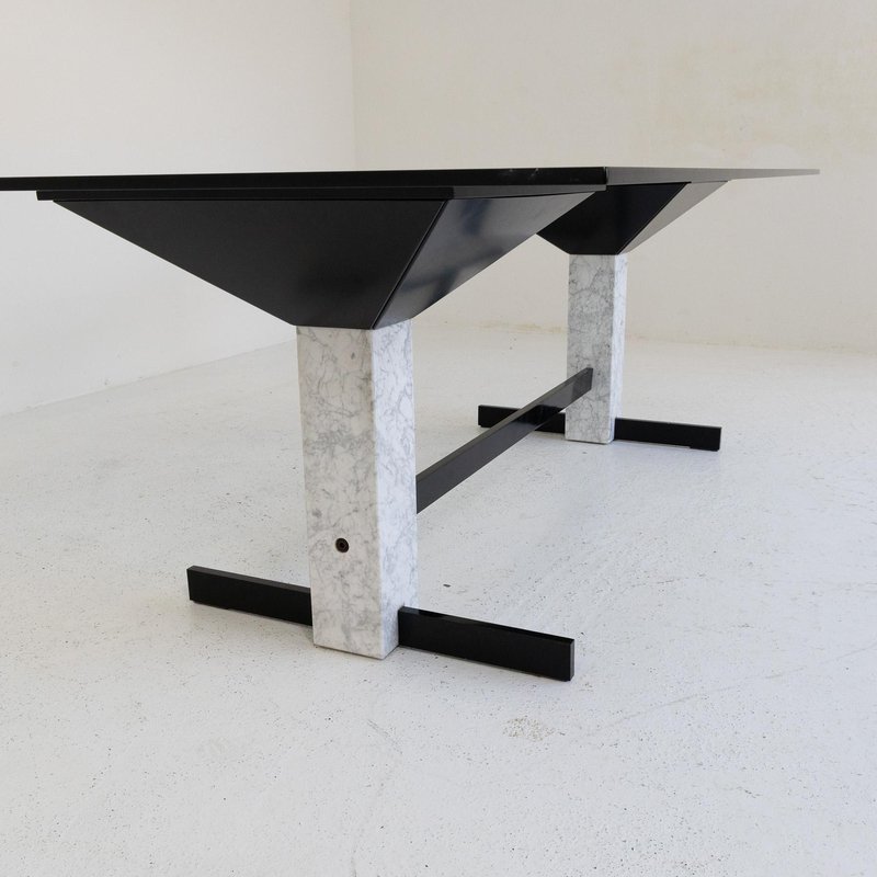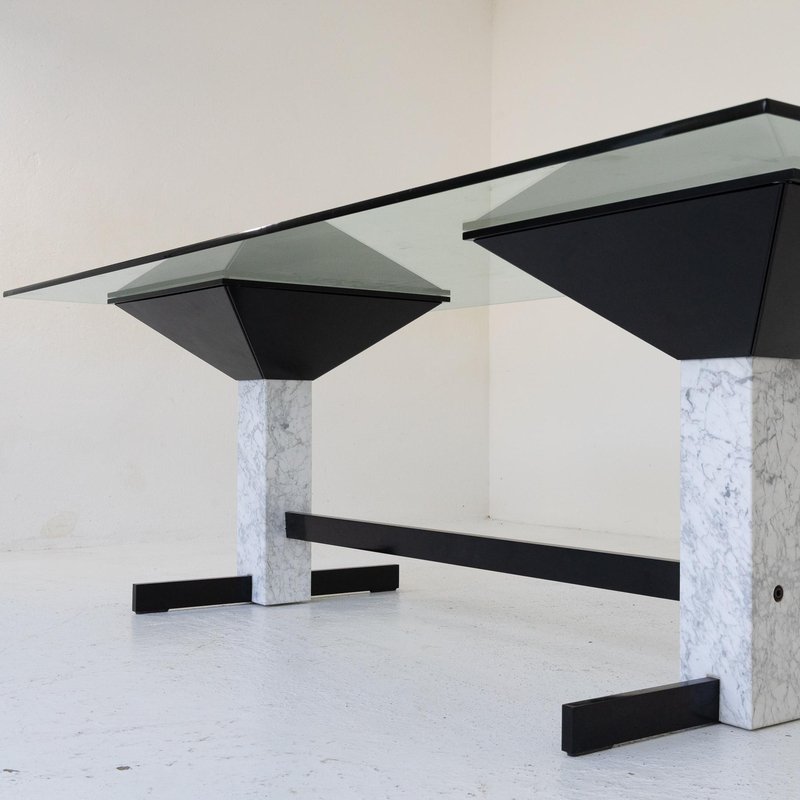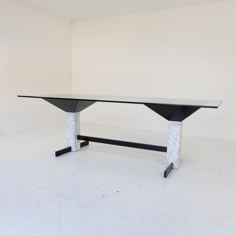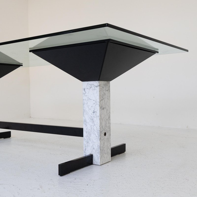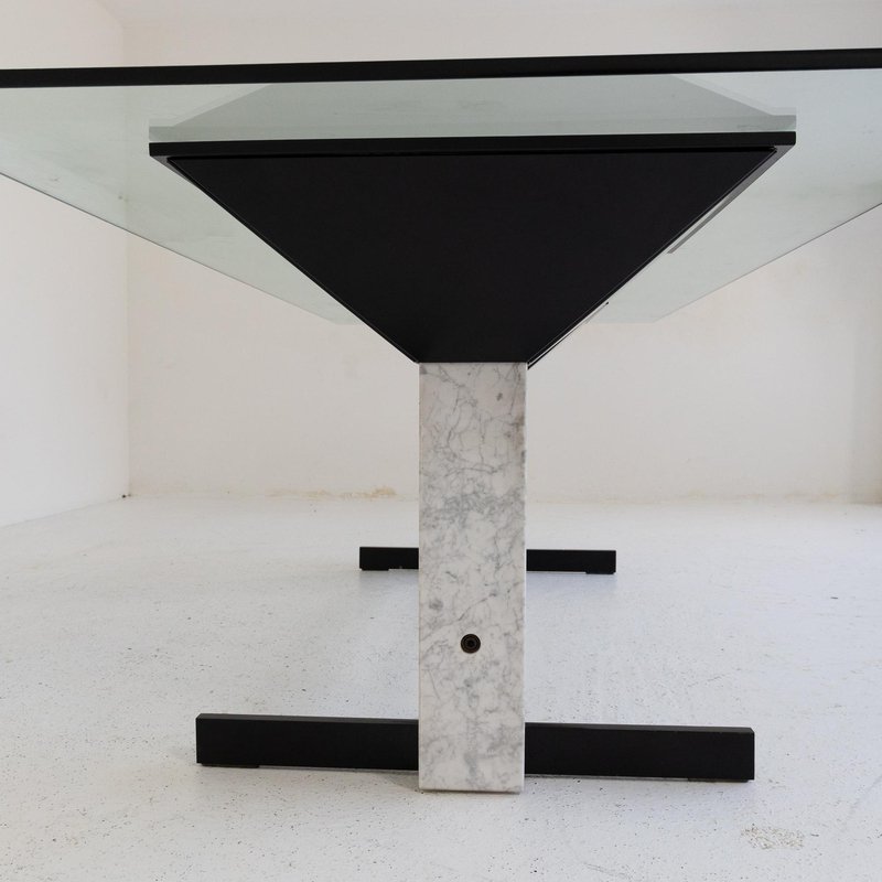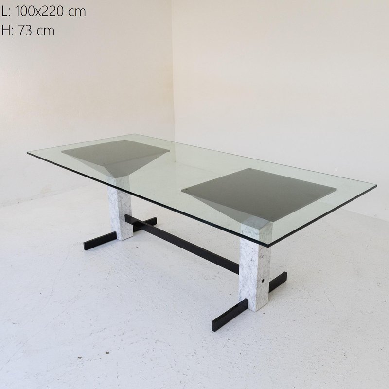 Table with Glass Top and Carrara Marble & Black Painted Metal Base, 1980s