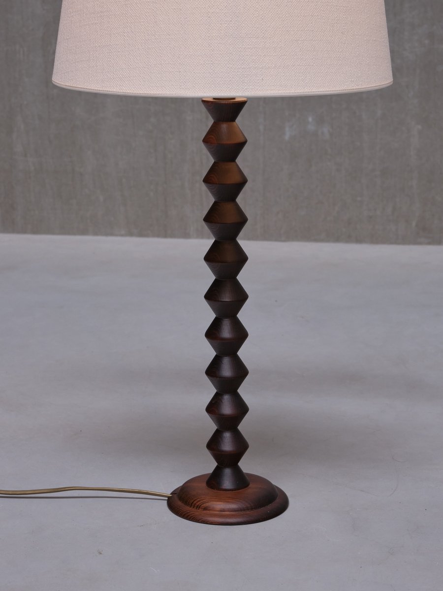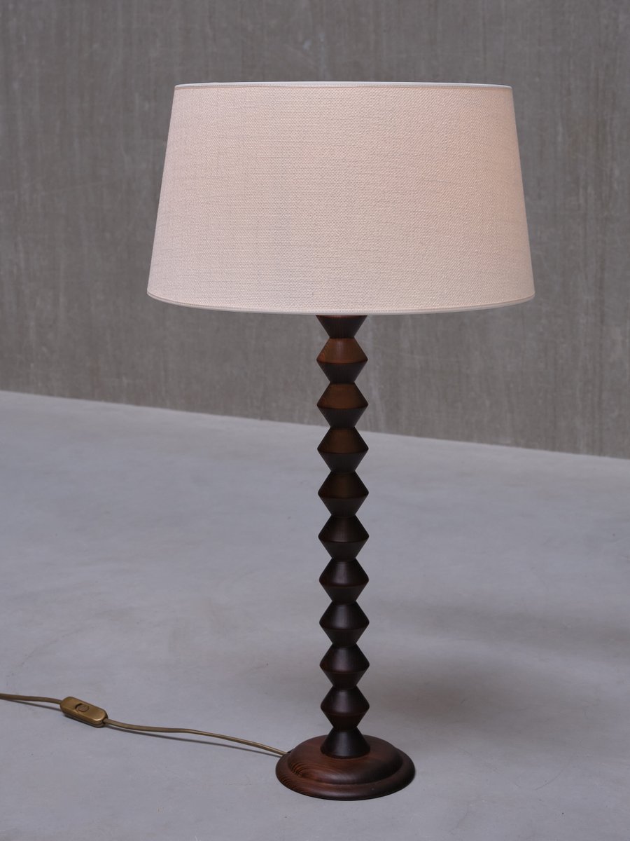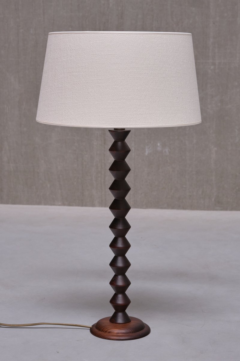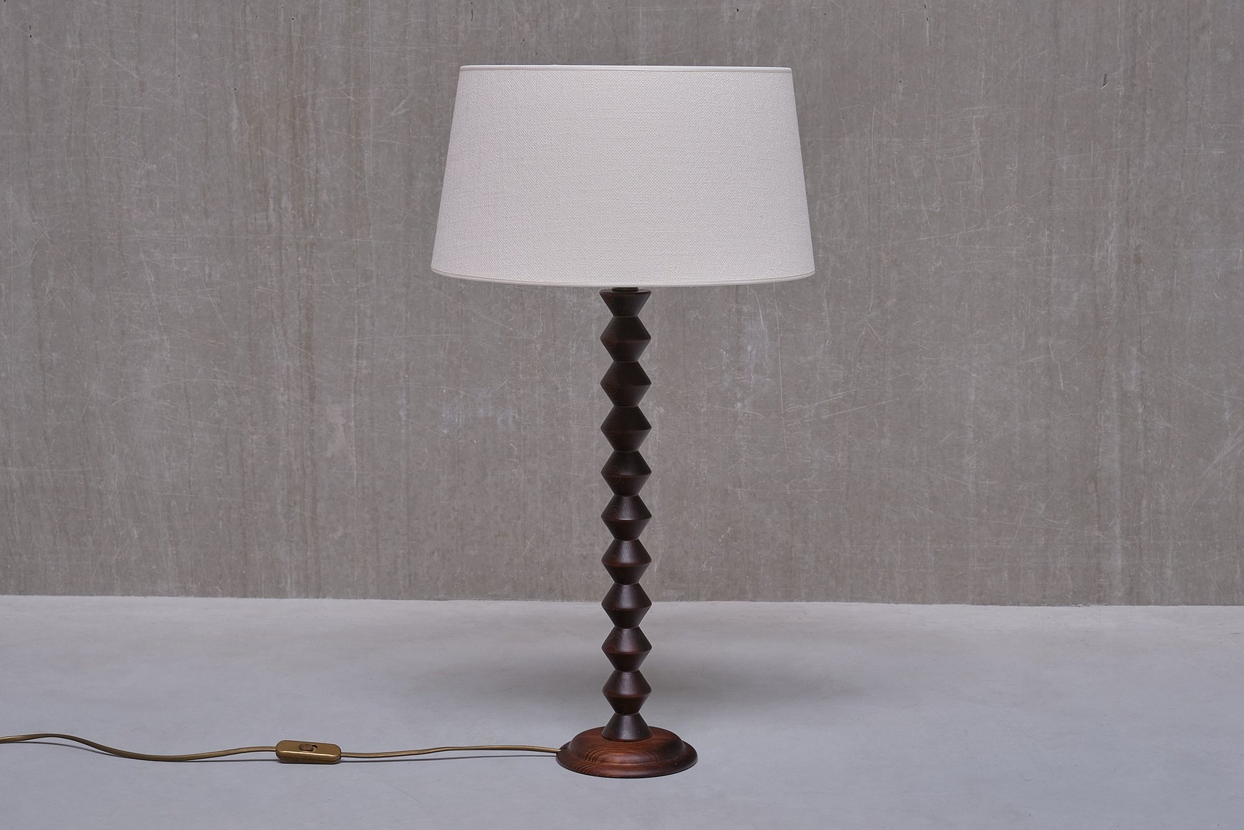 Tall Oak Table Lamp attributed attributed to Charles Dudouyt, France, 1950s