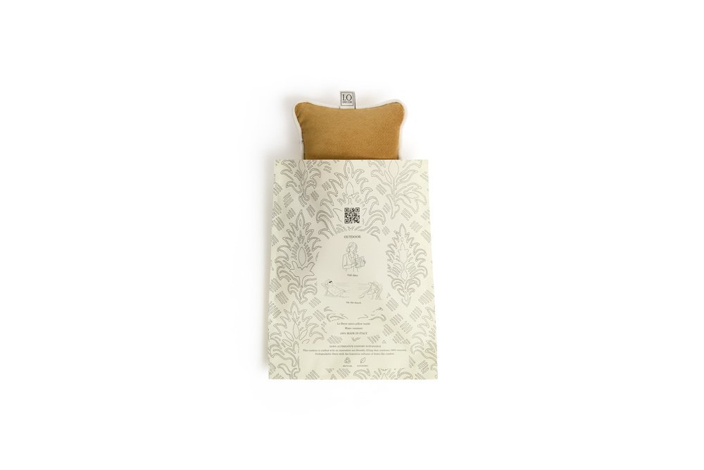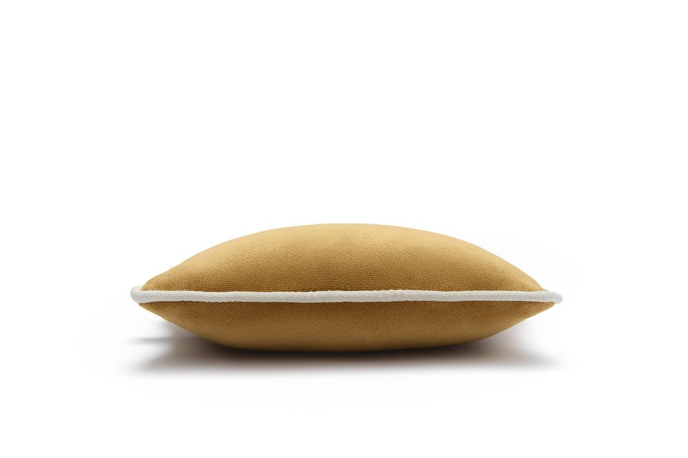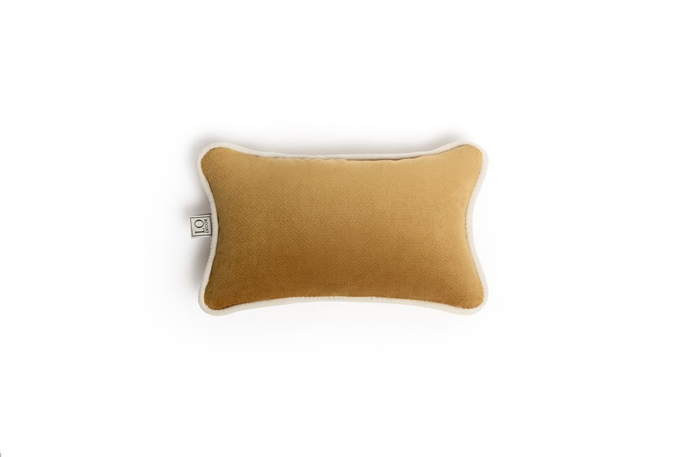 The Gift Micro Cushion in Camel Velvet with White Piping by Lorenza Briola for Lo Decor