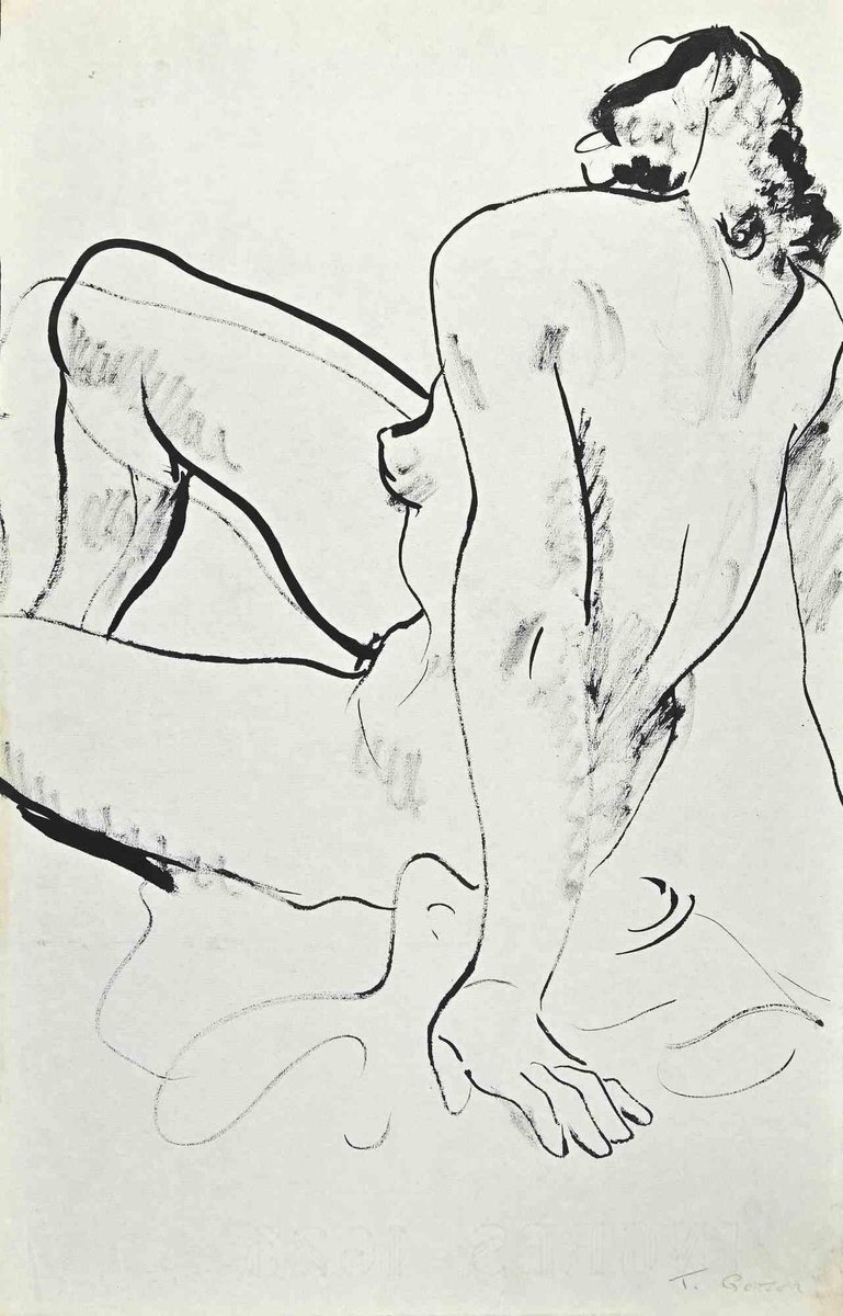 Tibor Gertler, Nude From the Back, Original Marker Pen, Mid 20th-Century