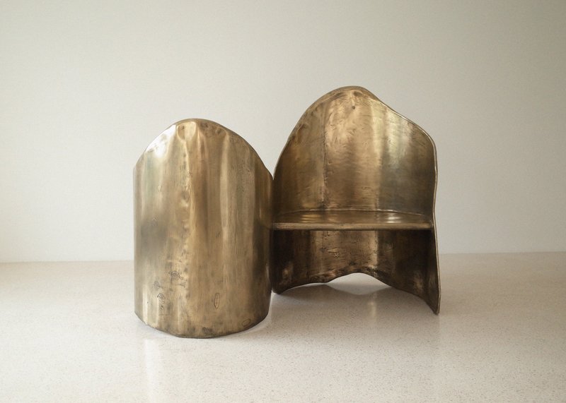 Toi & Moi Loveseat in Polished Brass Resin Over Inox by Atelier Ellery